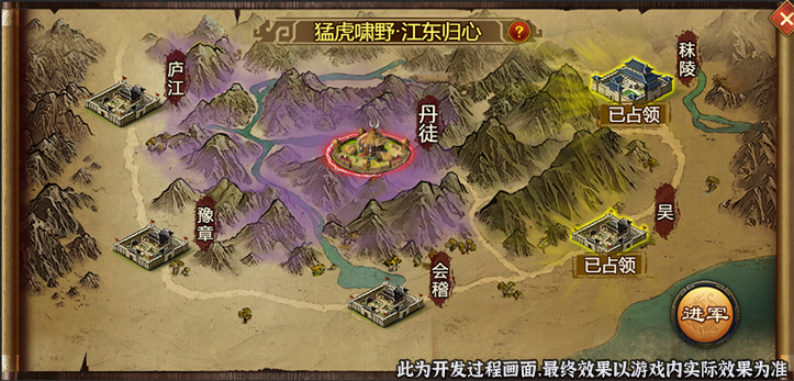 孙坚战殁后,孙策暂投袁术,渡江开启霸业。在本次『猛虎啸野 · 江东归心』霸业剧本中,主公们将扮演孙策势力,深入体验平江东过程中发生的一系列事件,最终完成一统江东的霸业史诗! 注意:本文内所有爆料内容均来源于开发版本,实际效果请以线上效果为准。 ★版本内容★(点击预约及时收到更新通知~) 【入口】 更新完成后,主公们可通过新开霸业剧本或通过治所中人物头像进入本次『猛虎啸野 · 江东归心』中。 【剧本
