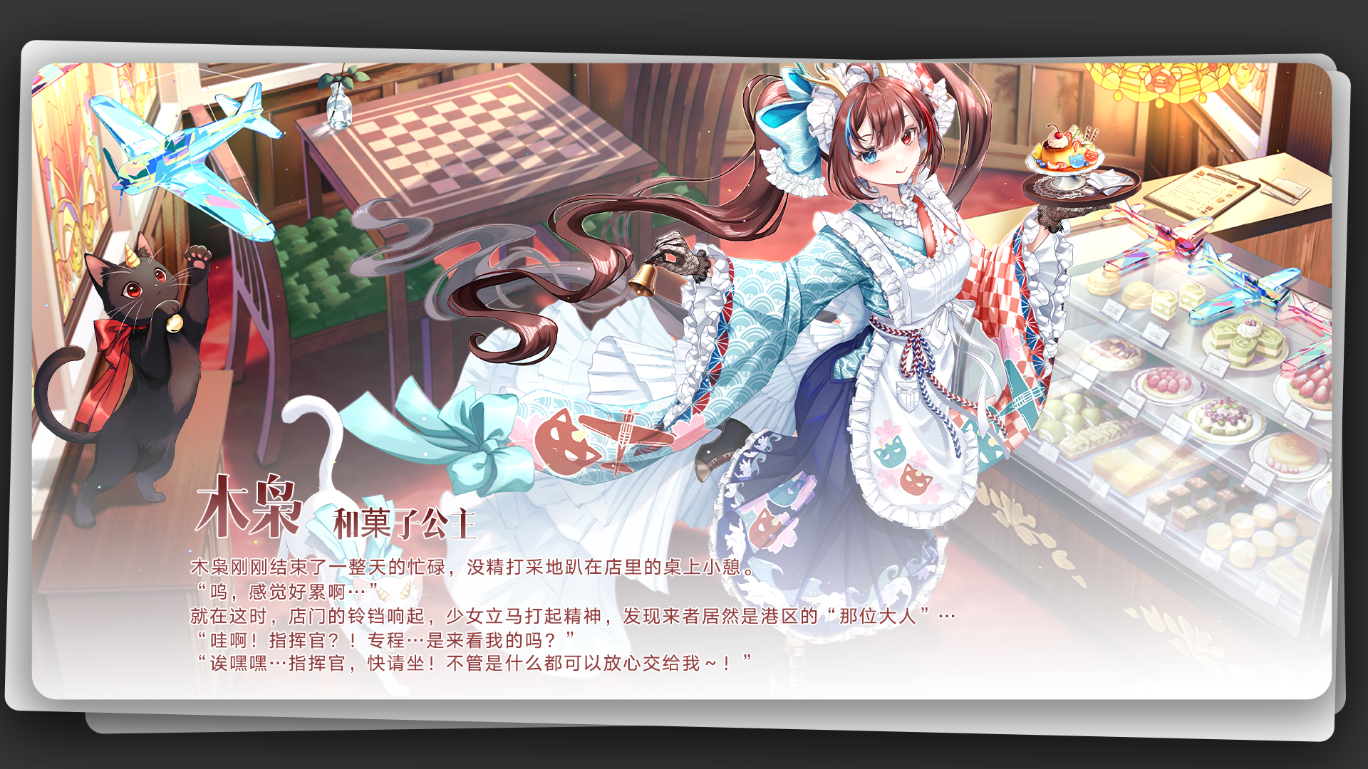 全新舰灵「哀猑」登港,木枭换上新衣打点起了传承下来的铺子!全新版本「甘味硝烟!和菓子铺的保卫战!」正式开始,和木枭,哀猑一起保卫点心铺吧!