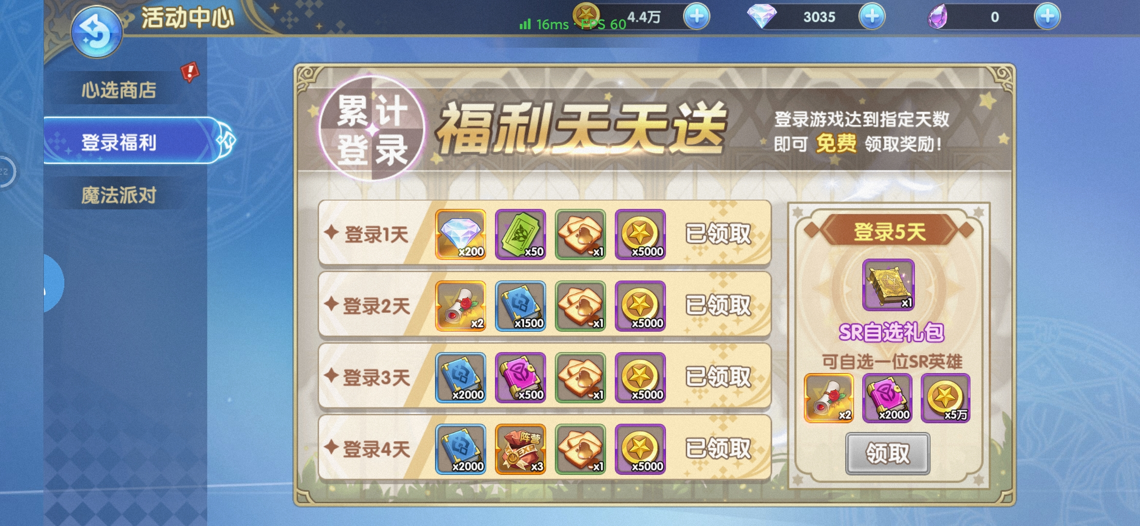 每日免费自选礼包
