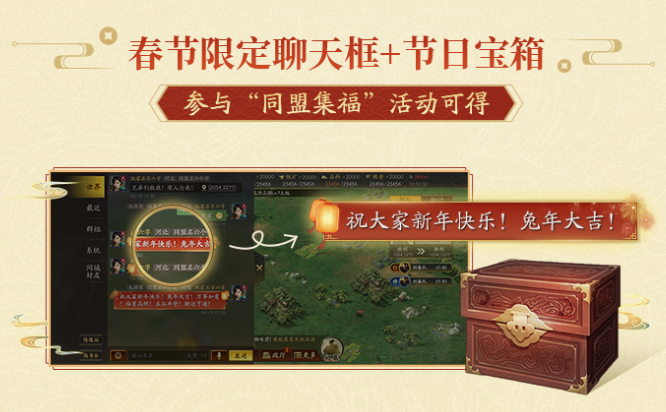 新年伊始,万象更新。值此元旦佳节,小乔姐姐祝各位主公新年快乐! 这即将是和主公共同渡过地第四个春节,接下来立刻呈上本次癸卯兔年的新春福利和活动前瞻。 新春福利 以上是小乔姐姐为主公梳理的新春福利,可长按保存收藏哦! 活动前瞻 本次春节以“盟友欢聚三国年”为主题,分为三弹! 重磅年度剧本《襄樊之战》 第一弹:策略三国年 · 以水决襄樊,重谱三国史 全新PK赛季剧《襄樊之战》报名将于1月3日开启。1月