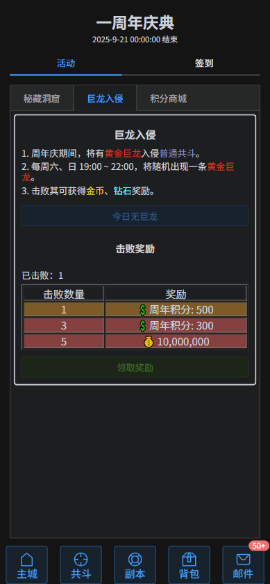 魔龙山巅开放,迎战超强巨龙,豪取超限暗金,毕业指日可待!更有中秋国庆双节活动,祝您快速提升!