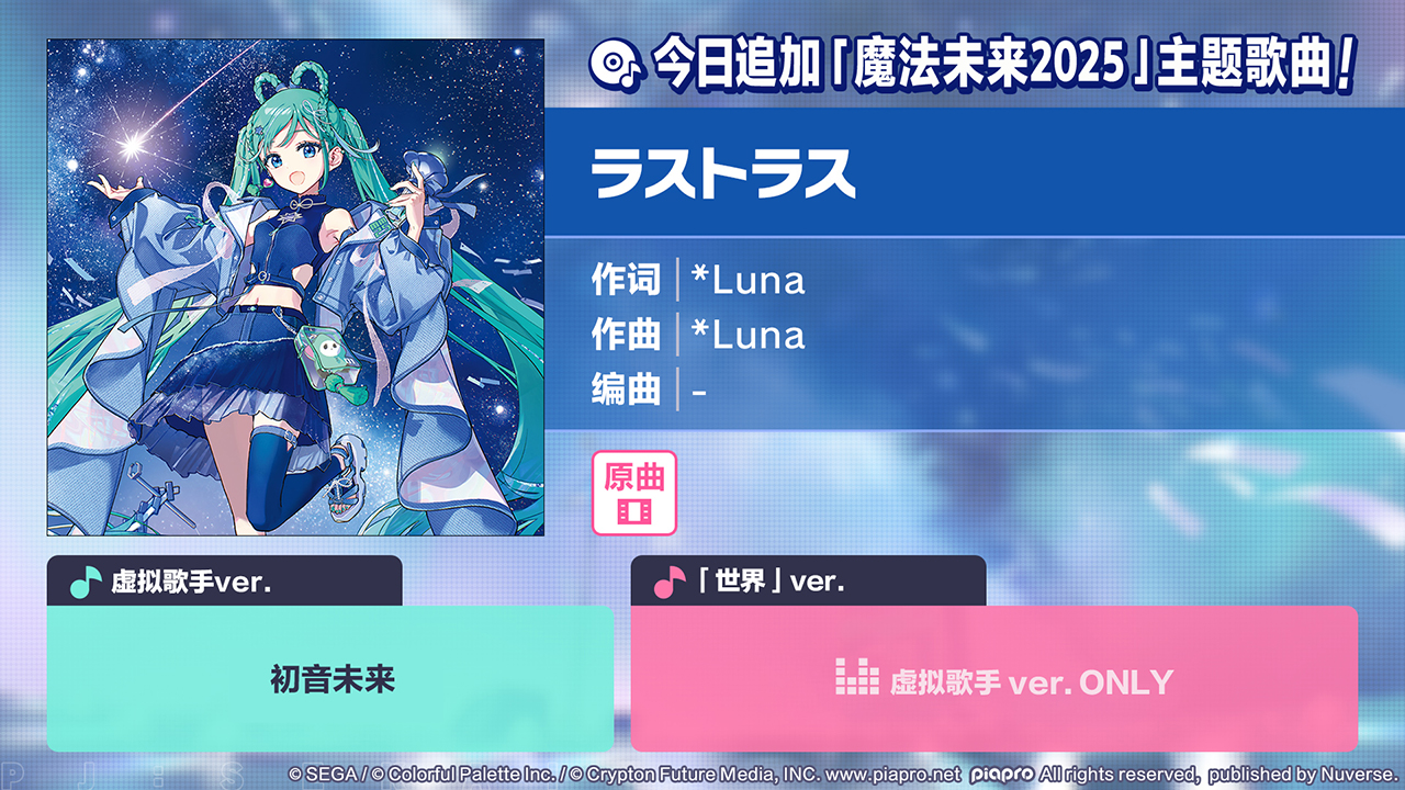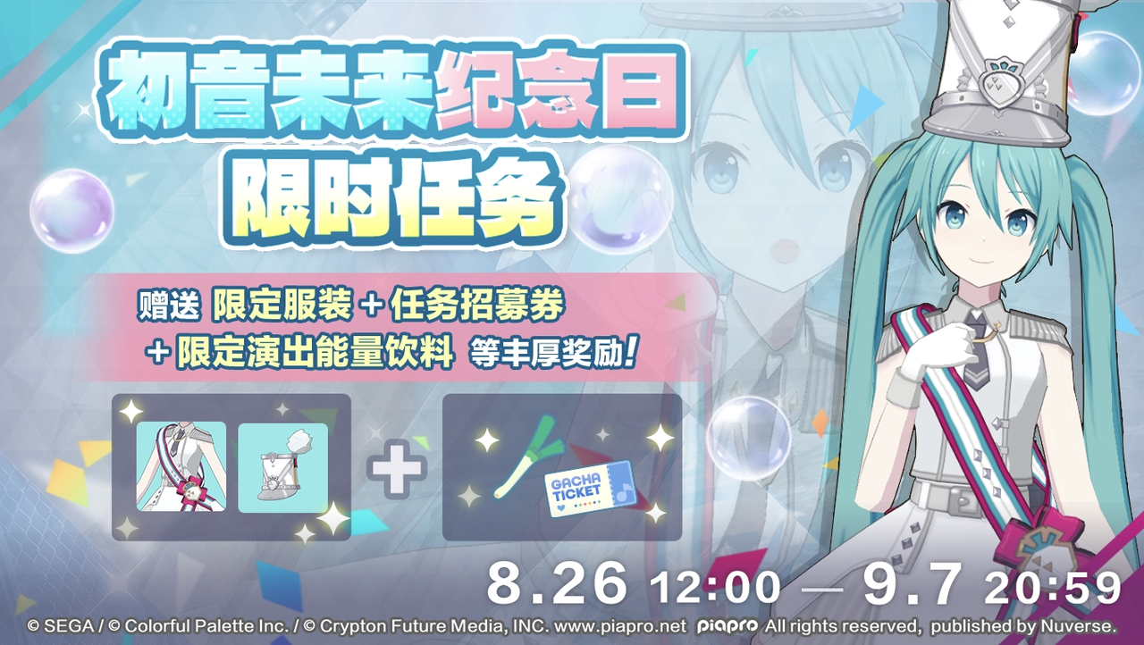 一起来共同庆祝初音未来纪念日吧!新活动,限时任务,高级礼物招募!追加魔法未来2025主题曲《ラストラス》!