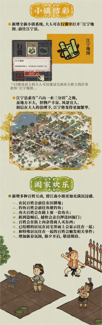江南百景图2.1.2 新版本将于1月12日上线,新关卡、新系统、新剧情、新建筑尽在《江南百景图》2.1.2新春版本宣传片,请各位知府点击查看。 转发本贴+留言你对新版本的祝福与期待+留下你的游戏账号(游戏内设置页面可直接复制)。我们将在1月31日选出5位幸运知府,奉上新春礼包:补天石*6480+金画轴*10+建筑画轴*10。