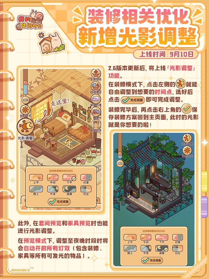 精心装修的小屋,当然要找个绝佳的构图好好拍照纪念啦~ 拎起“命运的后脖颈”,将小猫小狗通通“抓”进镜头里 那边还在洗澡的小蜗快过来,一切准备就绪就等你啦! ⭐️2.6版本更新后,将新增「自由拖拽角色/宠物」功能&角色洗澡互动动作,长按角色/宠物即可自由拖拽至可放置的地方,拖至可互动家具(如沙发/床/椅子等)还会随机触发互动动作,拖至浴缸类家具还可触发全新洗澡动作!更多详情戳下图查看~ 🌱居居小Ti