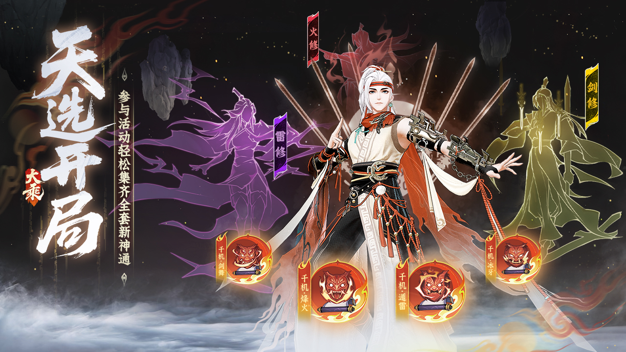 大家好,我是问问! 大乘版本将新增荒族神通流派【百族·千机】,操控傀儡攻击。 装配2个及以上千机神通还能开启独特的流派效果,在所有神通释放后都另外召唤对应属性的傀儡发动追击,帮你出奇制胜! 除此之外,还有【剑系·太华】【火系·炎凰】【雷系·绝云】三个新增流派,一起和问问看看新神通的具体机制效果吧! 荒族新增神通流派 1、百族·千机 流派核心 千机·剑舞 流派效果 装配2个千机流派神通激活。 神通命