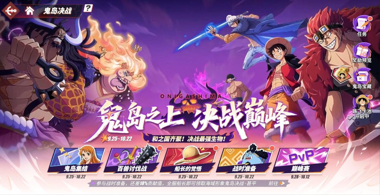 鬼岛决战·路飞主题活动来袭!鬼岛决战专项活动限时开启,超多限时召唤券完成任务即送!