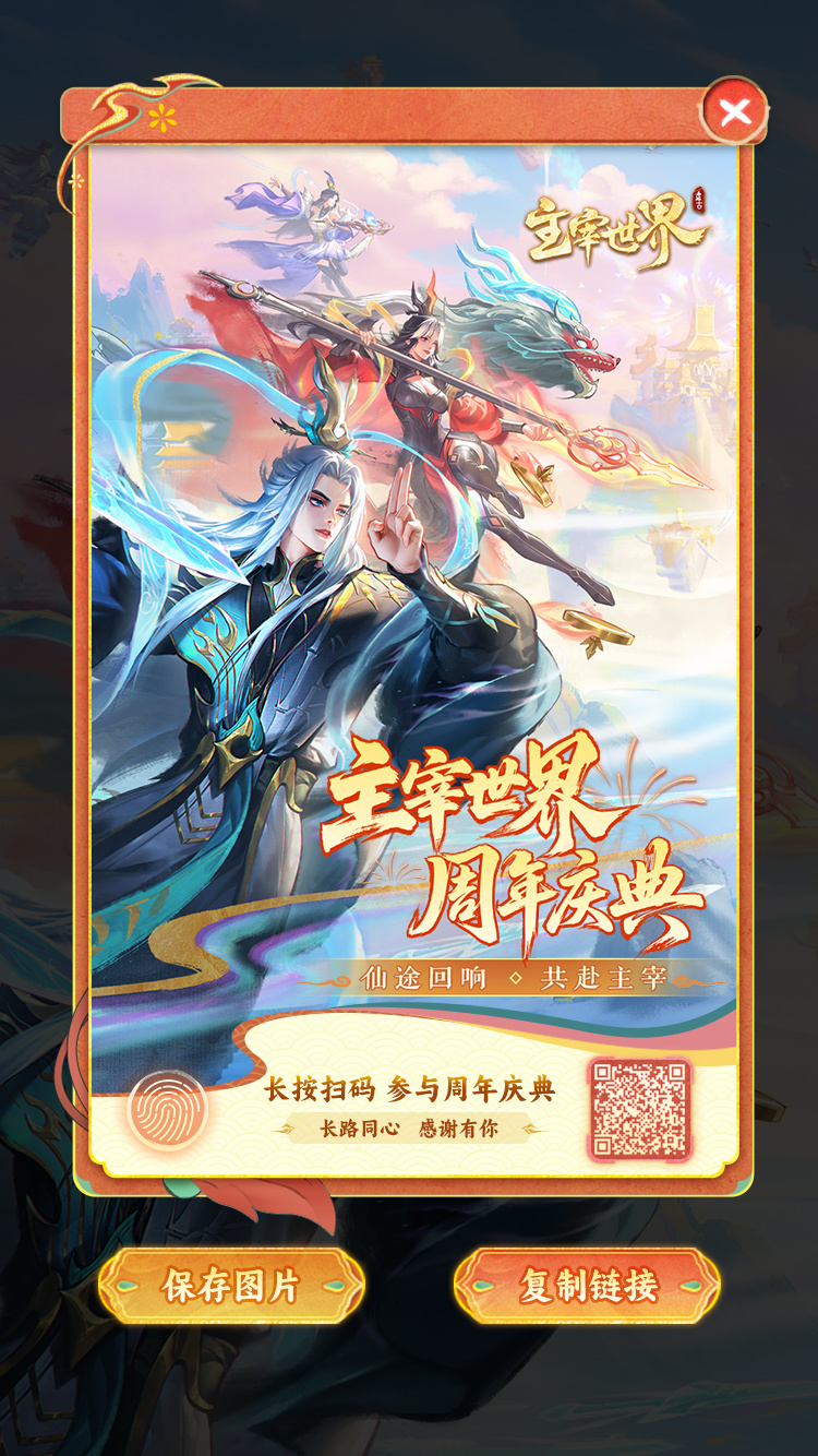 仙途一载,感恩同行! 转眼间,《主宰世界》已经陪伴大家 走过了一周年的仙途时光 这一年里,我们并肩斩妖除魔 留下了无数难忘的回忆 为了感谢大家的相伴与守护 盛大的【周年庆典】拉开帷幕! 无论是期待已久的周年主题曲与KV 还是仙途盛典活动与游戏内的六大庆典玩法 瑶妹都已经为大家准备好啦~ 快来看看这次有哪些惊喜吧!🎁 (社区)仙途盛典福利加码 【👇扫码参与】 ✨ 共创异兽揭幕 修士们之前共创的三只异