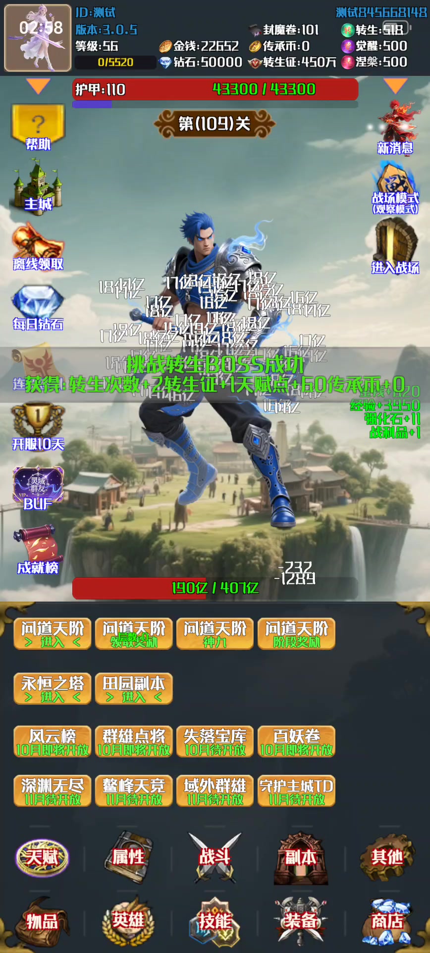 全新的田园副本上线,可以在休闲的时候种种菜,偶尔收获一下,轻轻松松提升属性获得物品