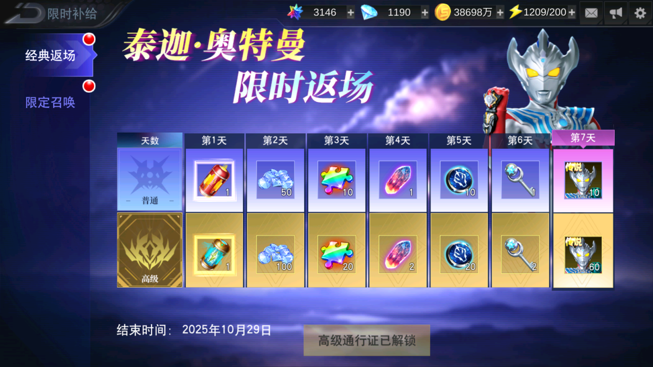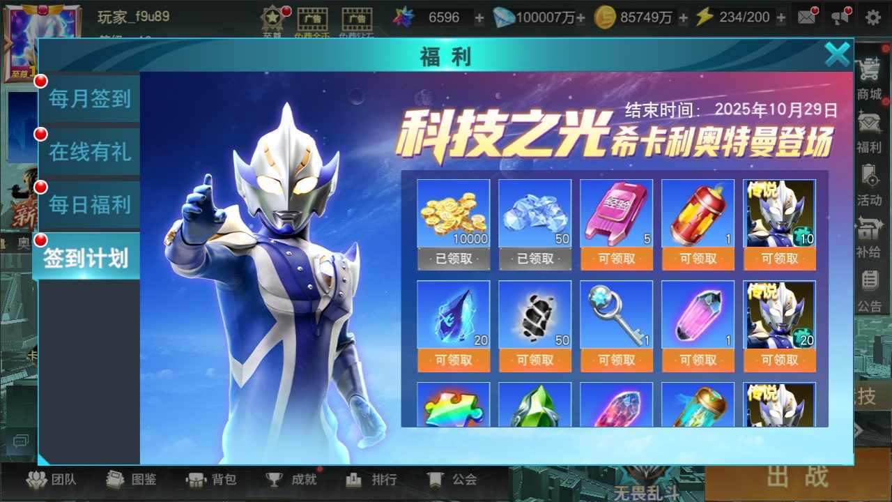 传说级角色希卡利奥特曼上线,希卡利限时签到任务开启,活动期间完成签到任务即可免费获取希卡利奥特曼及其专属装扮!