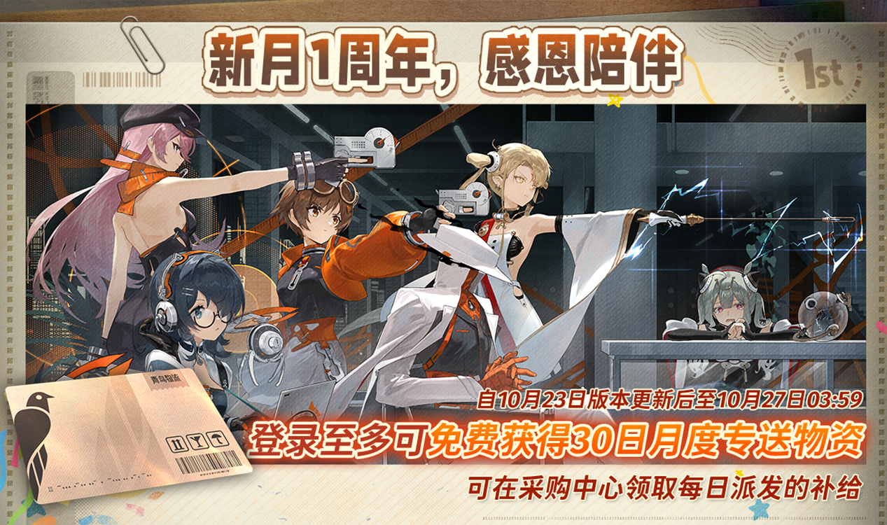 10月23日更新 全新版本「正乌托邦」即将上线,全新6星特工【凡尔纳】【伊底】登场,【龙井】【梧桐】装束上架,登录可领30抽以及免费自选六星