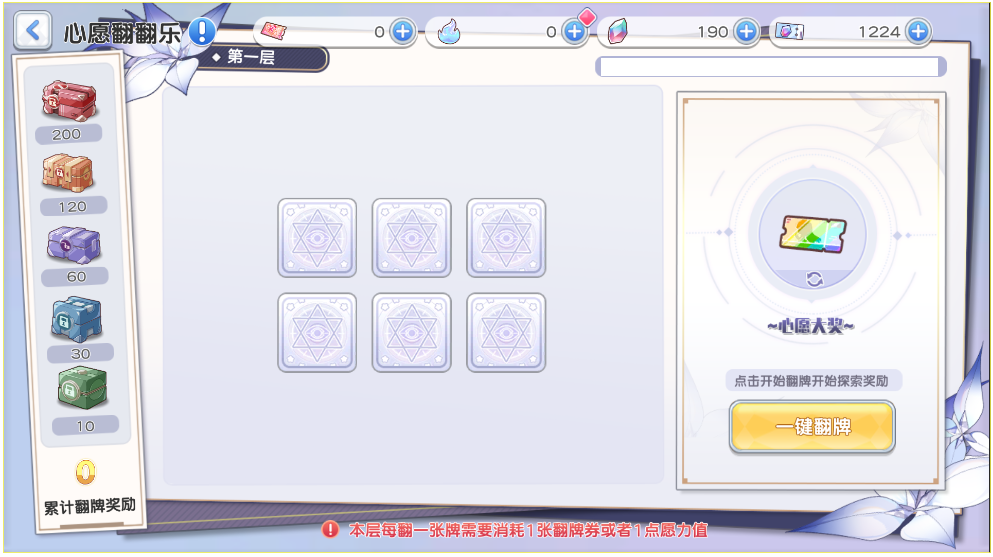 一、心愿翻翻乐 亲爱的指挥官,翻翻乐活动闪亮登场~ 活动入口:主界面 → 活动中心 → 心愿翻翻乐 活动时间:26年4月23日4点~26年4月30日4点; 开启条件:指挥官角色等级≥20级; 活动内容: 1.活动期间,消耗指定道具可兑换翻牌券,完成活动任务可获取愿力值; 2.进行翻牌时,优先消耗愿力值,愿力值不足时再消耗翻牌券; 3.指挥官可以在心愿奖池选择每层心愿大奖,翻到心愿大奖后将出现传送门