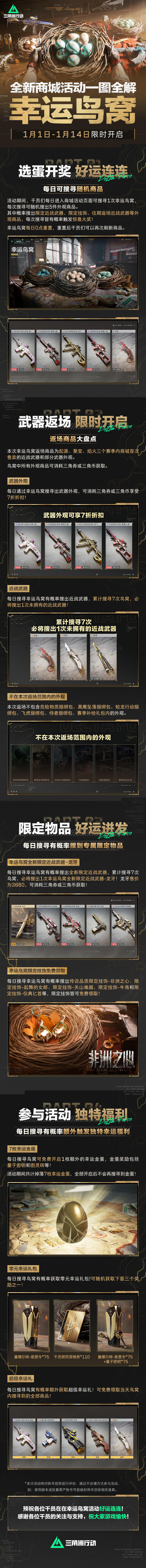 全新商城活动「幸运鸟窝」将于1月1日正式开启! 「幸运鸟窝」搜寻规则、返场细节、限定物品及独特幸运福利一图全解!