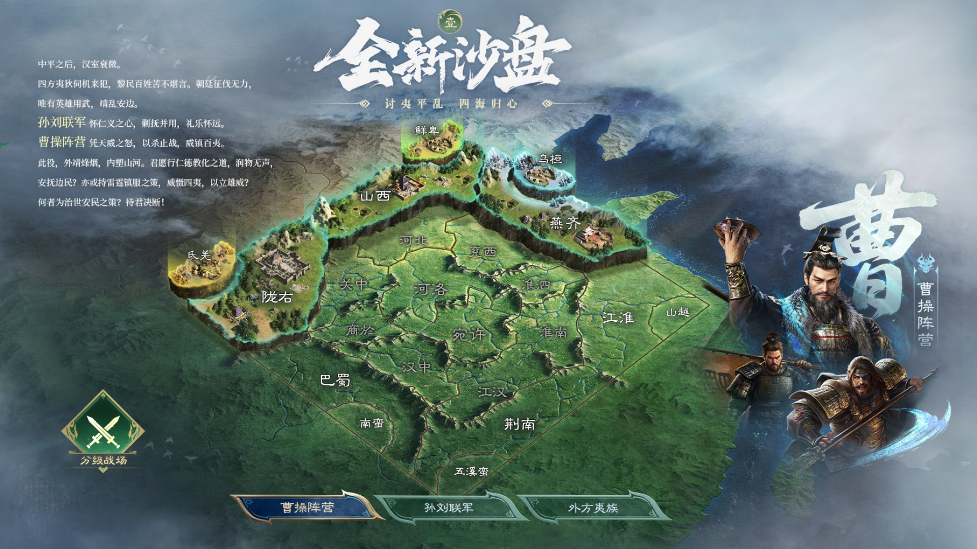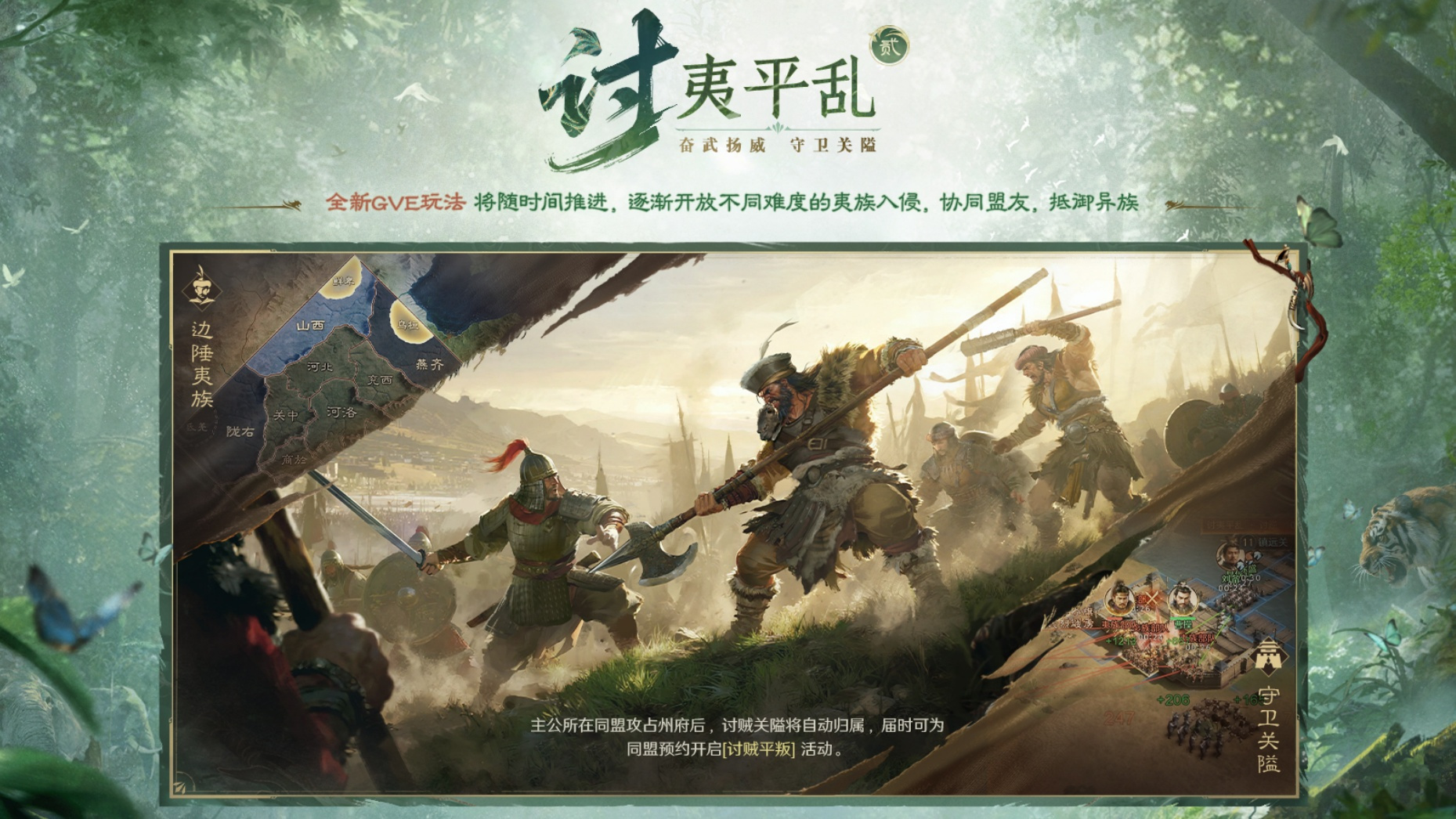 全新问鼎赛季「四海归心」登场! 中平之后,汉室衰微。曹操军与孙刘联军对峙未歇,四方夷族趁乱而动,烽烟燃遍边关!何者为治世安民之策?待君谋定!
