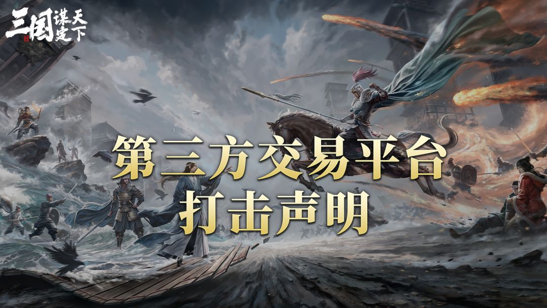 尊敬的各位主公: 近期收到较多主公反馈,因第三方平台账号交易而产生的盗号、恶意找回、诈骗等不良事件。 为维护《三国:谋定天下》公平、健康、有序的游戏生态,切实保障全体玩家的合法权益与账号信息安全,依据《三国:谋定天下》用户协议书、公平运营声明等相关约定,现就通过第三方平台或私下进行账号交易相关违规行为发布如下声明: 一、严令禁止任何形式的第三方平台账号交易行为 本游戏坚决禁止、严厉打击一切通过第三