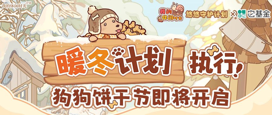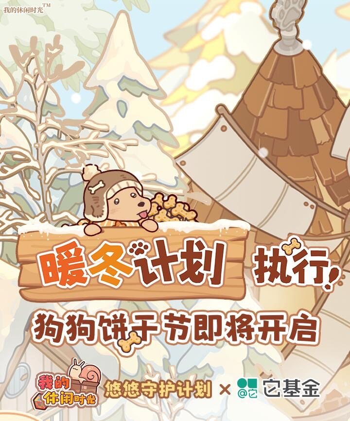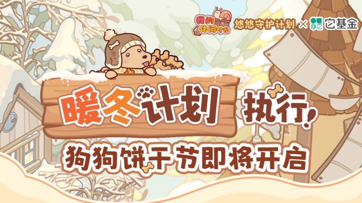 各位亲爱的小蜗: 最近悠悠镇开始变冷了,不知是否让你想起第一次遇见小狗的那天呢? 那时的它好脆弱,似乎寒风轻轻一吹就能把它带走;在你爱的照料下,如今的它不再恐惧寒冷,变得健康而活泼啦! 但是,我们仍忘不了初见它时那双怯生生而哀伤的眼睛:也许,还有许多像曾经的它一样的狗狗仍在忍受严寒。 为了帮助更多狗狗度过一个温暖的冬天,悠悠镇开展的「暖冬计划」在今天正式启动啦!12月4日,「狗狗饼干节」暖心开启,
