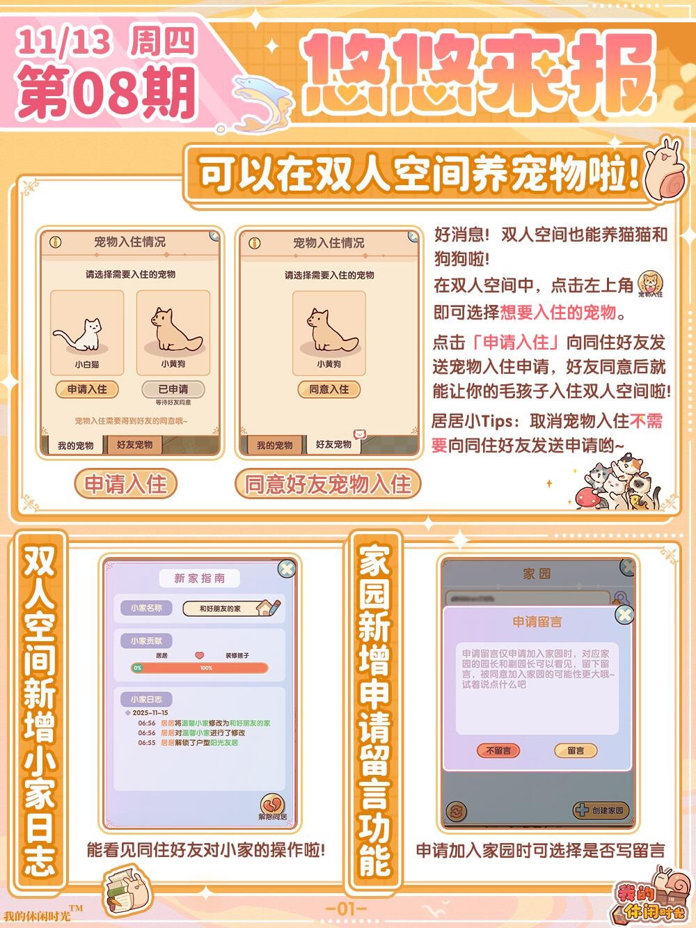 2.8 版本来临,猫猫狗狗也能住进双人空间啦!新增灯光控制按钮,可以实现一键开关灯,还有超多精彩内容等小蜗体验~