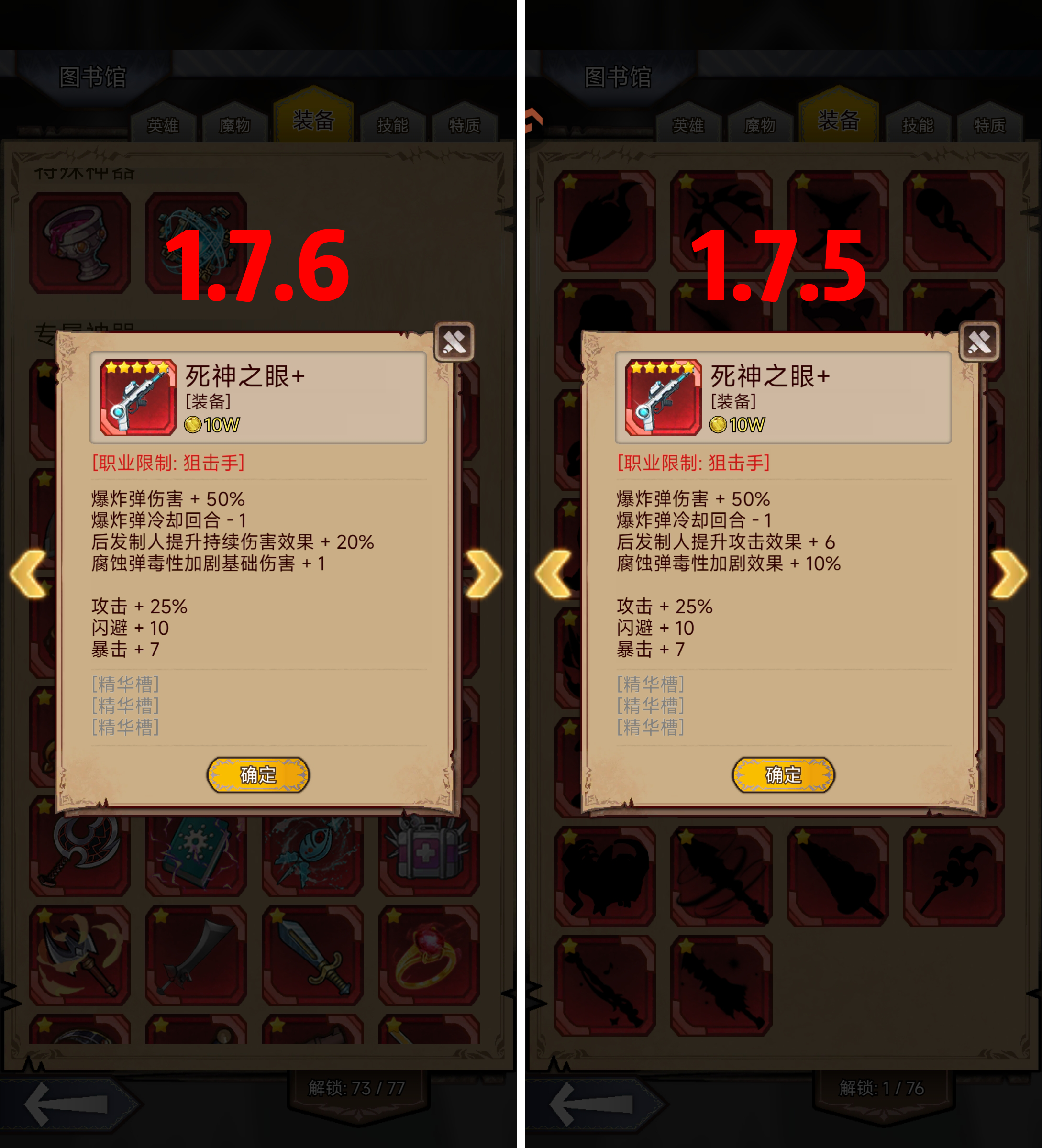 亲爱的宝子们,又一轮更新来啦~ 关于更新内容大家可以在下方帖子留言,好的意见建议我们都会尽力去采纳的,感谢大家支持~本版本将尽快进行更新,请以实际更新时间为准哦,希望各位镇长多多理解哦~ 老镇长一定监督着程序猿们少摸鱼,多做事哦~ 预计11.7 18:00更新,具体上架时间请留意Q群433657571通知,部分平台可能有滞后,请以实际更新为准! 1.7.5预计更新内容 1,新神器:蝰蛇之吻 2,取
