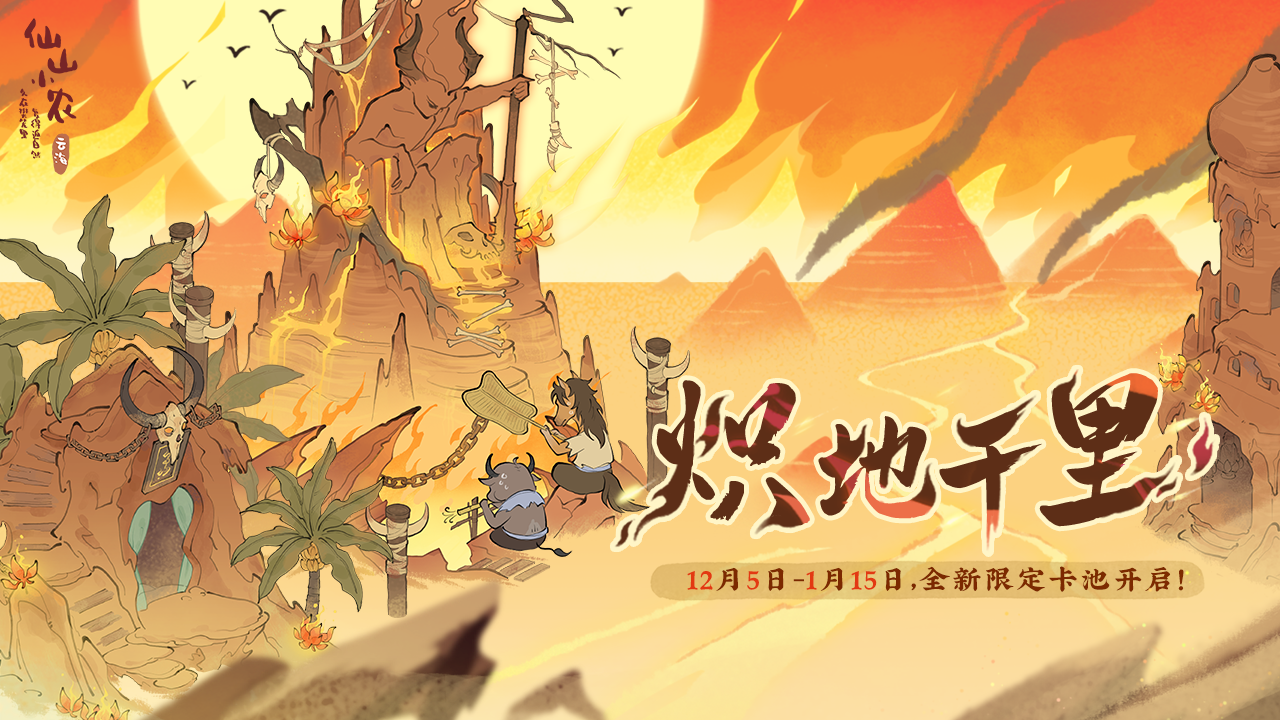 全新「盖世神威」「炽地千里」卡池即将开启!新增天级帮工「牛魔王」、天级建筑「烬土王座」。欢迎小农前来探索~
