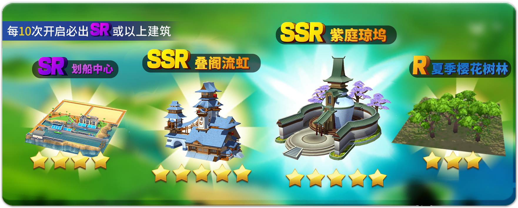 摩纳哥主题赛季开启,可升级建筑,外观焕新,增益升级! 听松斋加入限时豪华套餐礼包。建筑盲盒惊喜连连,紫澜水榭、青瓦溪居限时开放抽取。
