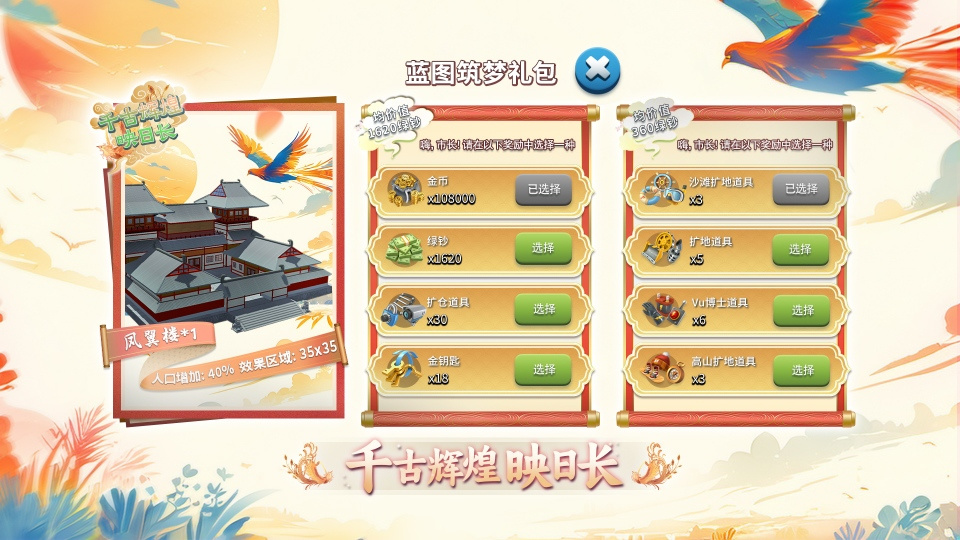 完成迷你城建,收获惊喜更有建筑大奖青瓷轩等你拿;全国风赛季骏马迎春开启;锦华塔加入限时豪华套餐礼包;建筑盲盒金龙御殿、擎天玄塔限时开放抽取。