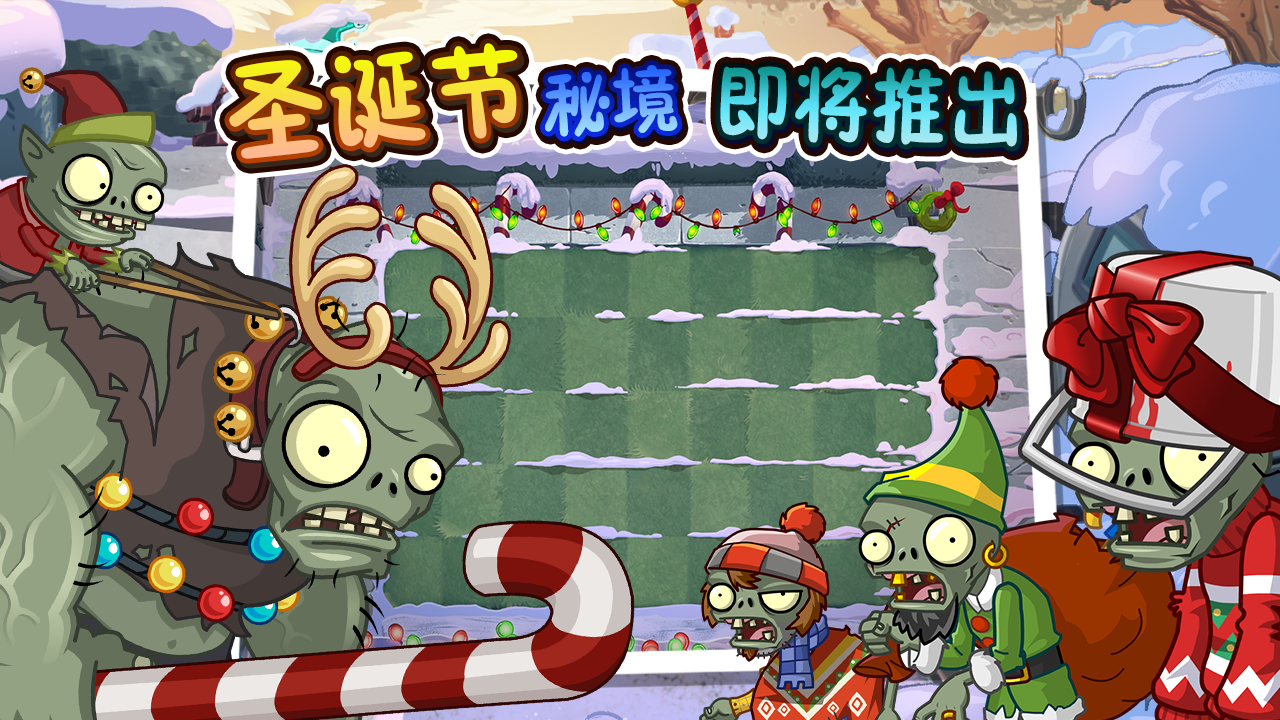 圣诞节主题秘境首次登场,解锁全新关卡全新玩法!叶子保护伞、撑杆僵尸、梯子僵尸等老面孔回归,新五阶和呆萌可爱的新植物登场,敬请期待。