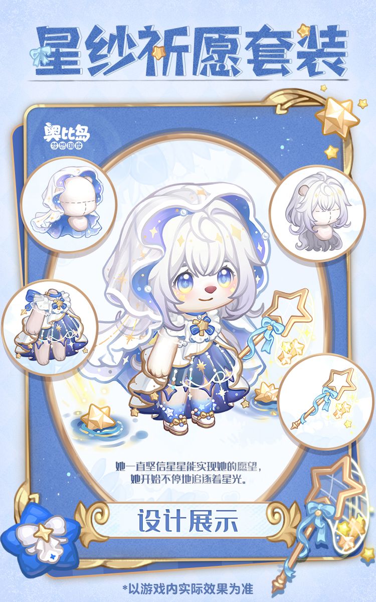 🌌自星空而来的少年,身披星月,循着心意,在夜色里等待一场温柔相遇;执着许愿的少女,追逐流光,打捞心愿,把星夜的盛景定格裙摆。璀璨夜空下,一场属于星辰的浪漫童话正在开启。 ⭐奥比生活新系列「星纱祈愿套装」「夜色拾星套装」等系列散件、「星夜童话」背景卡,将在4月10日新版本开启后上线~本期还有塔罗系列装扮返场,本期生活达到一定等级即可获得「均衡之灵套装」、「旷野之力套装」的🛒资格。