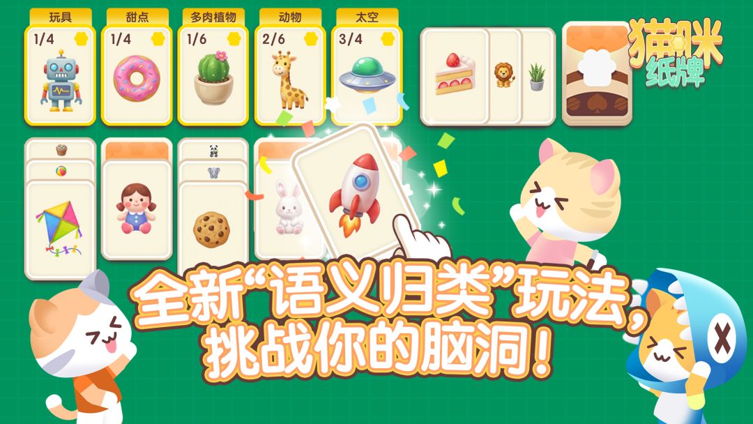 玩纸牌接龙不光能闯关,还能收集各种可爱猫咪卡,拿超多奖励!🃏😻 游戏里常有限时活动(比如收集毛线球🧶、铃铛🔔),玩接龙就能攒道具,还能开卡包拿猫咪卡,魔法棒道具还能帮你轻松通关! 每填满一组图鉴,就有好多金币拿💰!金币能解锁更多场景、买道具,让游戏更好玩~ 快来《猫咪纸牌》,一边玩接龙一边集猫咪,当收集大师吧!🎊#猫咪纸牌 #休闲游戏 #纸牌接龙 #发现好游戏