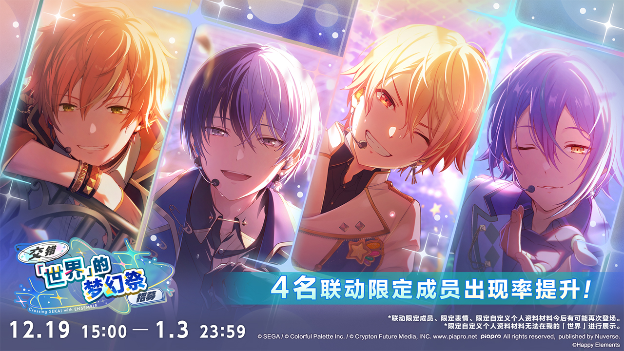 尊敬的各位「世界」居民: 我们将于12/31 12:00起将举办「[2026元旦]高级礼物招募」! “[2026元旦]高级礼物招募”必定出现★2及以上成员,且必定出现1名★4成员。 另外,会附带2026元旦的限定服装“丰收的肚皮舞娘”、“生命的肚皮舞者”套装。 本招募为每人限定一次,可使用付费水晶×3000进行招募💕 ※详情请至游戏内通知查看。 今后也请多多支持《初音未来:缤纷舞台》! 立即前往「