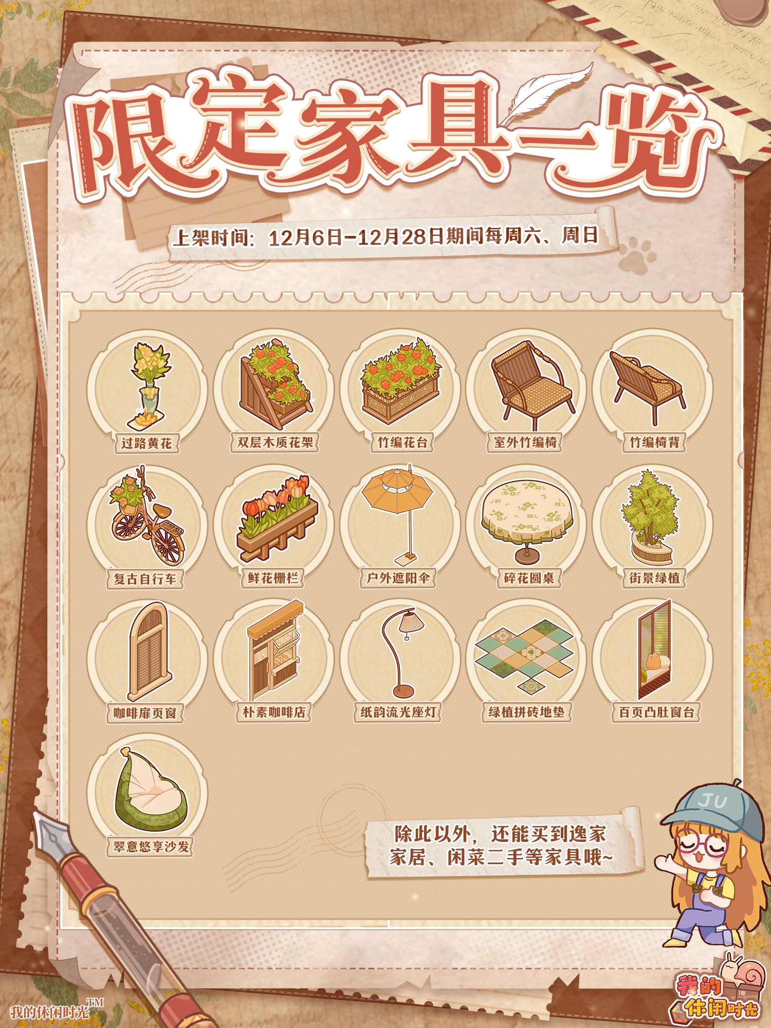 “想装修个整洁舒适的小屋怎么这么难!” “摆在茶几上的汽水和扑克牌找不到了,墙上的计划板怎么挂到另一头去啦!” “救命!有没有好心的小蜗可以帮帮我呀?TWT” ✏️全新玩法「设计委托」将于12月17日停服维护结束后上线正式服!完成小镇居民的装修委托即可领取委托奖励。后续还将上线更多的限时设计委托活动,大家敬请期待哟~ 🌱居居小Tips:新增玩法将在12月17日停服维护后上线 ===========