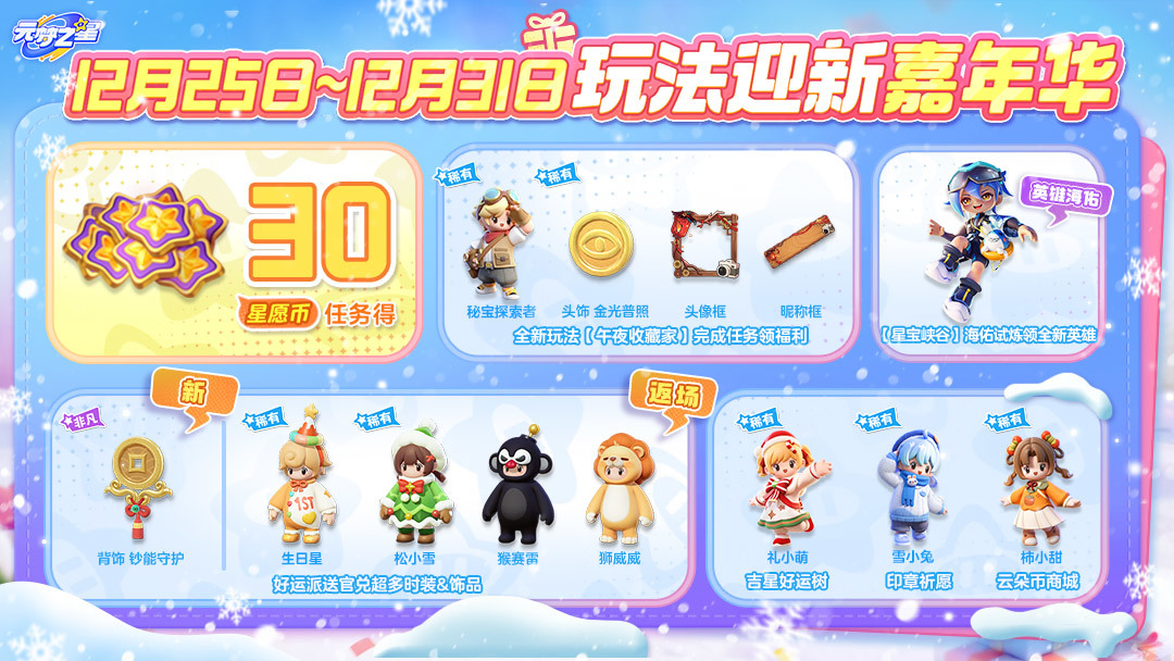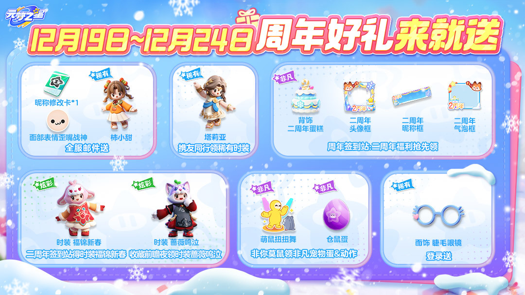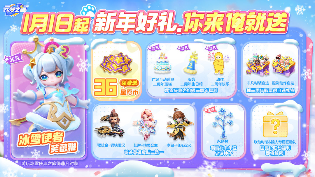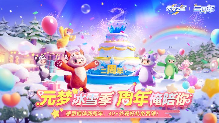 元梦二周年冰雪季邀你共庆!国产顶流 IP 联动即将开启,快来猜猜谁会和元梦一起过生日?
