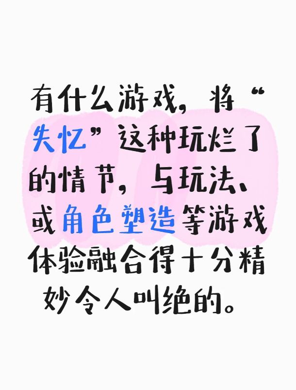 有什么游戏,将“失忆”这种玩烂了的情节,与玩法、或角色塑造等游戏体验融合得十分精妙令人叫绝的?为什么绝大多数游戏里的失忆,都只是个烂大街的开局借口?主角一醒就忘,剧情一推就满,玩完就忘,毫无波澜。而且有的明明前一秒还在靠失忆开启新手教程,下一秒就靠碎片回忆解锁终极技能了。你觉得目前市面上把“失忆”这一设定玩到极致的游戏是什么?有没有这种游戏推荐一下?#今天游戏圈发生了啥 #单机游戏#发现好游戏