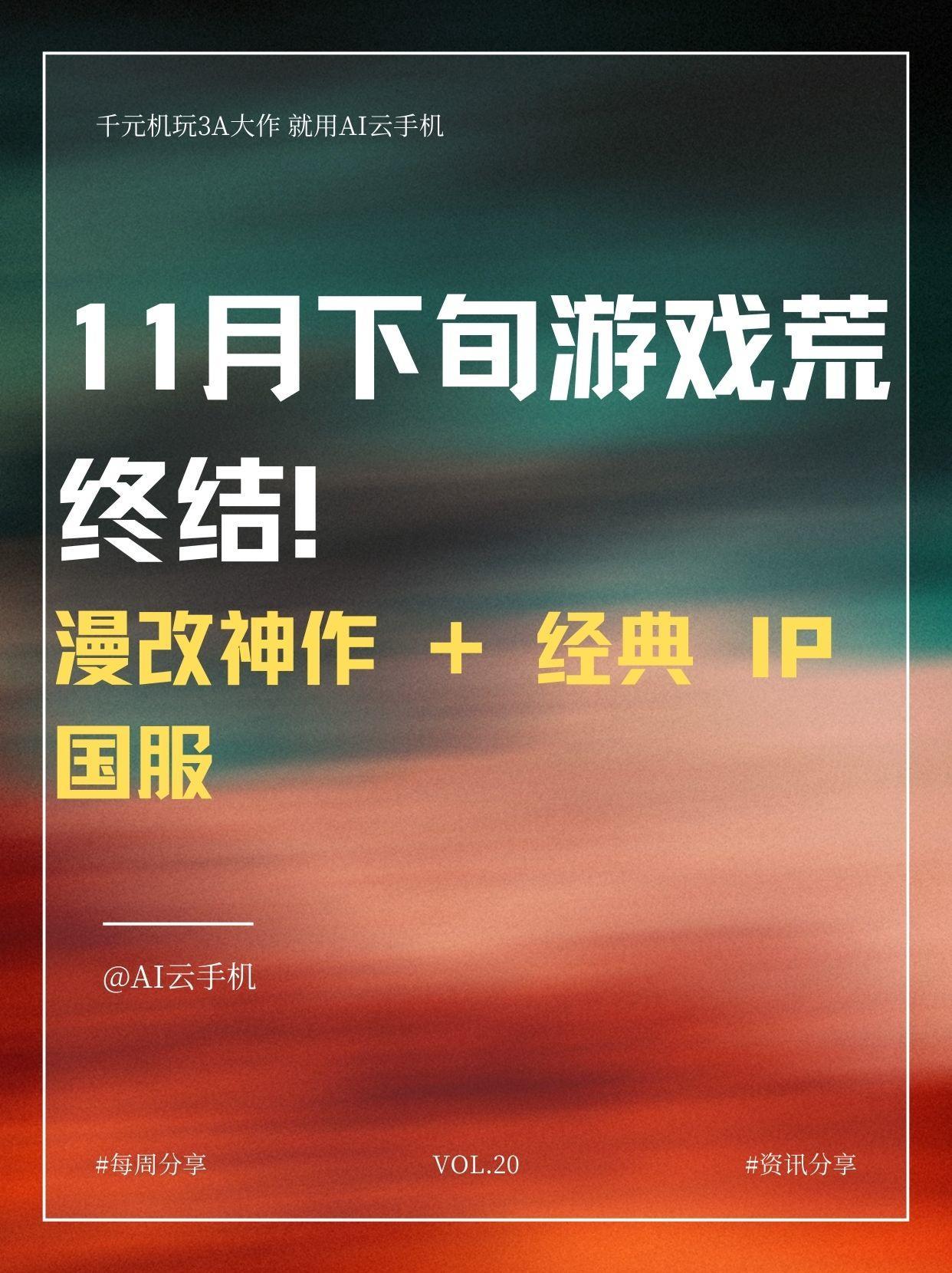 11 月下旬游戏荒终结!漫改神作+经典IP国服