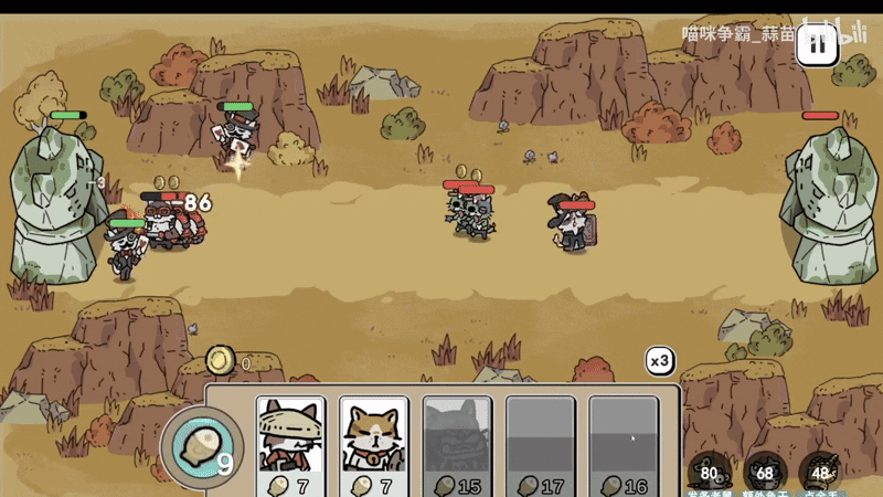 最近在《喵咪争霸》里捣鼓了一只新喵,还没正式起名,先暂叫他「魔术喵」。礼帽、小胡子、单片眼镜,一身西装,手里夹着一把红桃牌,走路一脸“资本家本喵”的劲儿。机制是远程输出:平 A 就是把手里的红桃牌甩出去打人。比较特别的一点是——每次攻击完他都会随机瞬移一下。好处:很多时候刚好能闪掉对面的伤害,对远程来说生存感挺强。坏处也很明显:瞬移位置完全看脸,有时候直接闪进敌人堆里,当场被围殴,玩着玩着