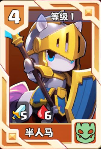 亲爱的冒险家们好呀,欢迎大家来到今天的随从推荐攻略~本期的推荐的随从是我们熟悉的老朋友小马~一起来看看我们应该如何用好这张卡吧!这个随从获取简单,实力强劲,它是突进将军、也是后排杀手--半人马!!一、随从介绍1、属性介绍半人马,种族归属--‘精灵’,待机值4,基础属性5|6(半人马1级即为满级哦)。半人马是英勇无畏的战士!!向前冲锋只会激起它的斗志!!不会有丝毫胆怯!!2、技能介绍技能