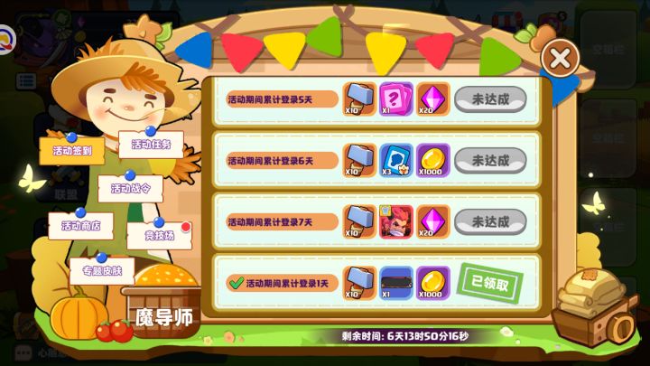 亲爱的冒险家们好呀~在这寒冷的冬天里,我给大家带来了最温暖的礼物,让各位冒险家都有充足的物资过冬,一起来看看都有些什么吧~一、签到活动累计签到7天,可以拿到70个锤子、60紫钻、5个油刷等奖励,油刷可以在活动商店兑换丰厚的奖励哦~第一天的签到奖励极为丰富,还没签到的冒险家们抓紧了,动动小手把福利拿下!!!二、活动任务完成一些简单的任务,就可以领取数个高等宝箱、30个油刷、多份随从卡等奖励,