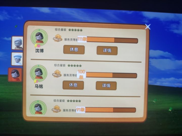建议加一个收银员,要不然后期桌子多了一个一个收太费时间。有的服务员送完外卖就跟死机了一样,我的服务员越来越少。图片上这几个NPC在哪啊,绕了好几圈都没见。服务员没体力太快,不用一天就两三个小时就没体力了。厨师在不忙的时候永远是前几个在工作,前几个都没体力了后面的还不动,除非到了那几个人多的时间点。餐厅等级声望永远是零不知道为啥不提升。扫码付款那个已经是最高了但还是概率太小,建议直接出收