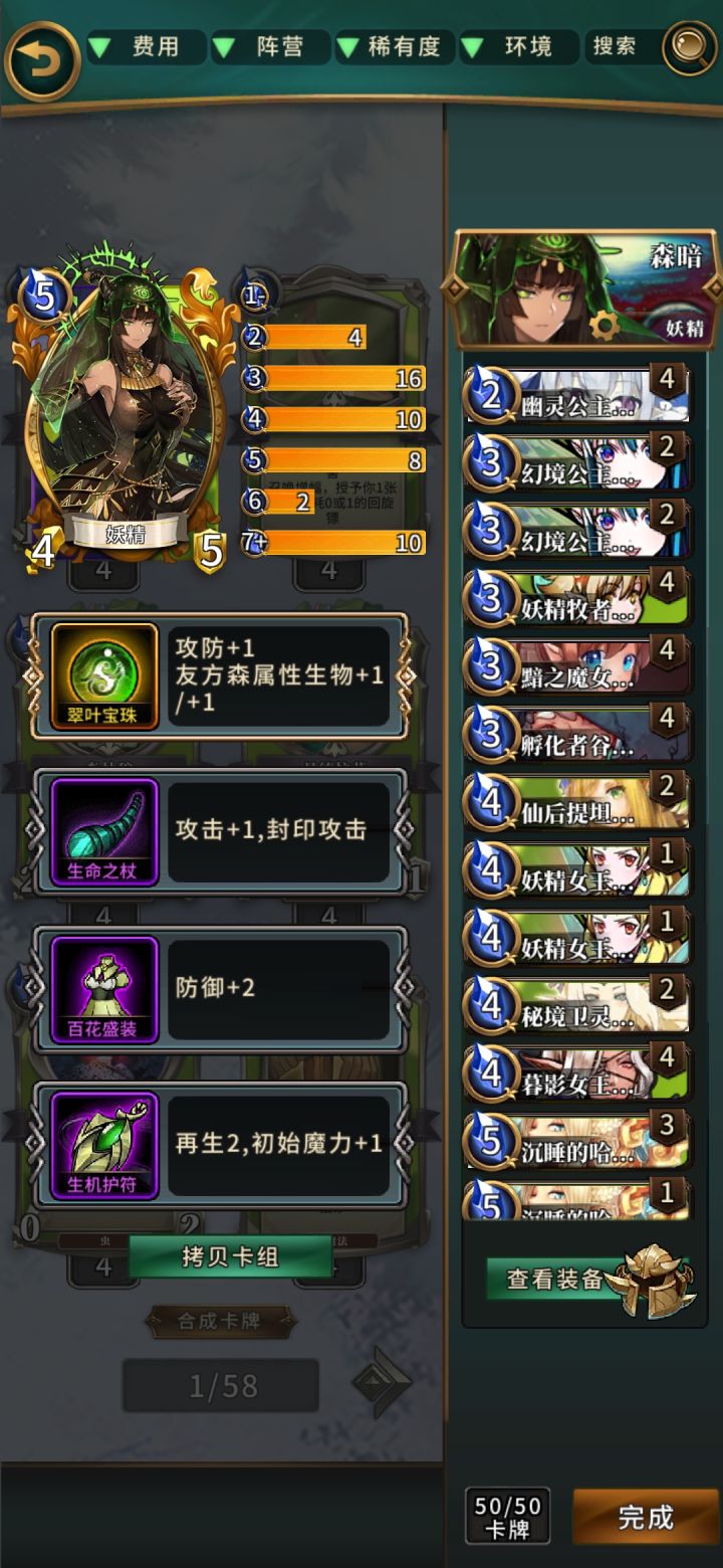 这里先上卡组新的轮回宝具也是可以带的妖精奈亚作为仙宫版本的最强卡组之一,哪怕放在现在强度也是毋庸置疑的,刚好现在有使用仙宫卡的活动,在这里也是推荐给大家。1、卡牌替代:绿古神→考虑蛛后,银门,海拉,森神拉满。我加入绿古神完全是为了打翻桌职业,特别是打路西法(黑白)效果非常好。剩下没有的都可以替换成死亡,剑兰这些质量红。2、各职业对局思路奈亚嘛大家都懂笨蛋职业,对局输赢全看对面,这里只