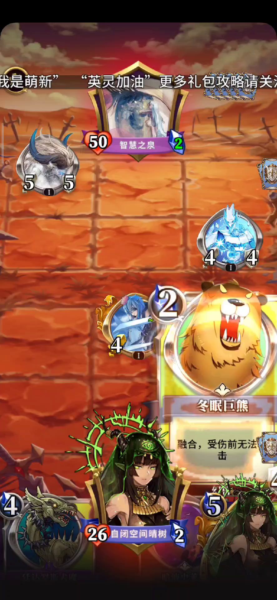 受.时参启发——思路:第五格最安全,第二格不能动,第一回合必须抽到城墙放到第三格,剩下的靠发挥。用送给我们的魔法牌和唯一的生物牌对抗。这也许就是这一关魔法牌的意义吧!!! 套牌组成:全部生物牌、偶数牌、按照千面之神奈亚的牌型组合。 最后对面还剩6点生命,而我方几乎满血,按道理来讲应该是会赢的,奈何网络不给力,但我也不想再试一遍了。