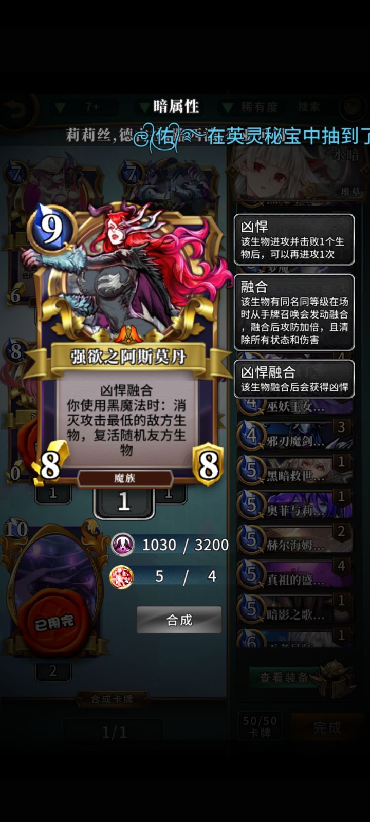 这玩意别看只带了两张,但是其实绰绰有余哒,毕竟奈何不住别人会疯狂刷牌啊!我们来看看他的收益四费44身板带封印攻击融合带凶悍且每召唤一个贵族就可以来一张复制(在有天子降费的情况下一回合二融合不是梦😁)况且融合后可以直接咖喱棒清场岂不美哉?