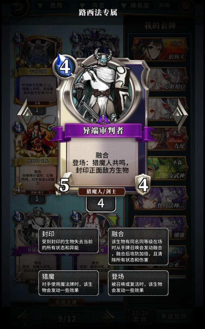 1.核心牌(先驱传令人、博士海德)1.1先驱传令人,配合绿魔法和时魔法,召唤一个仙宫勇士(暴击,回血身材),前期配合回旋镖等低费绿魔法还能快速铺场。1.2海德(释放绿魔法根据手牌加身材,那我开头30攻击的海德了吗,因为之前一个海德被抓过去了,不然5费秒人也可以)2.英雄装备(因为都是森系,绿珠子,会心攻击暴击配合月圆之夜和英灵时间打半血,配合先驱床令人召唤的仙宫勇士,暴击翻倍)之后就是加身材