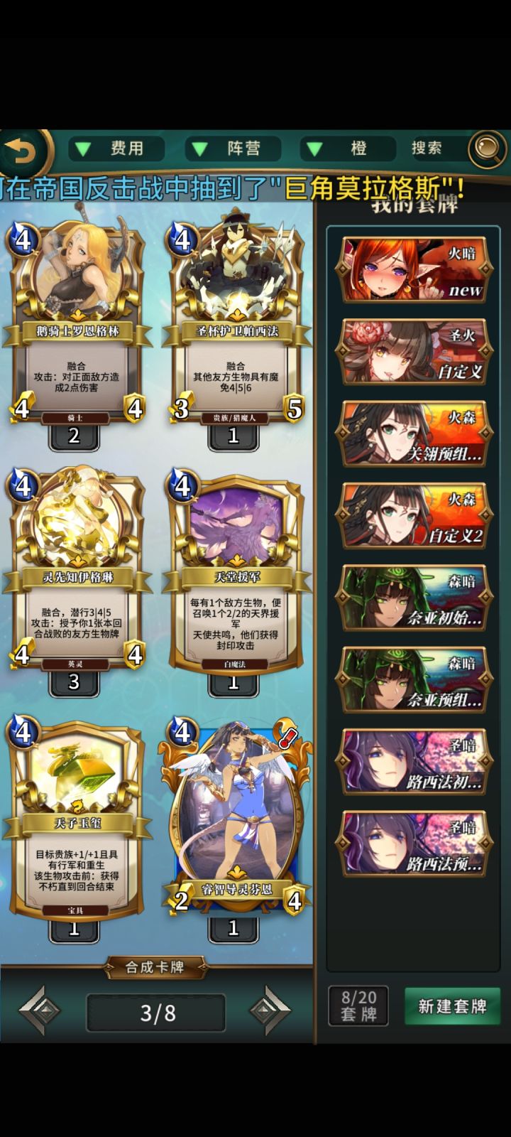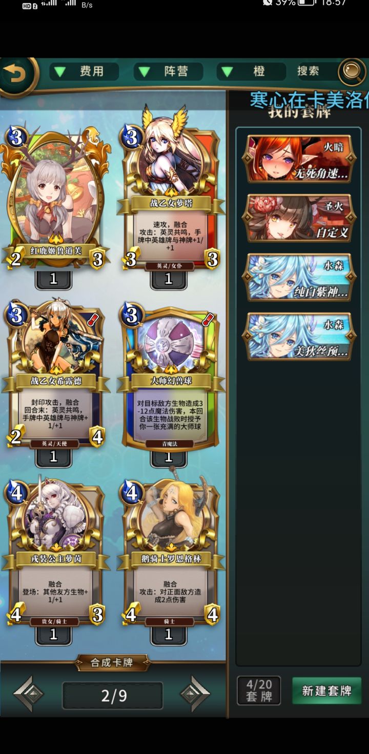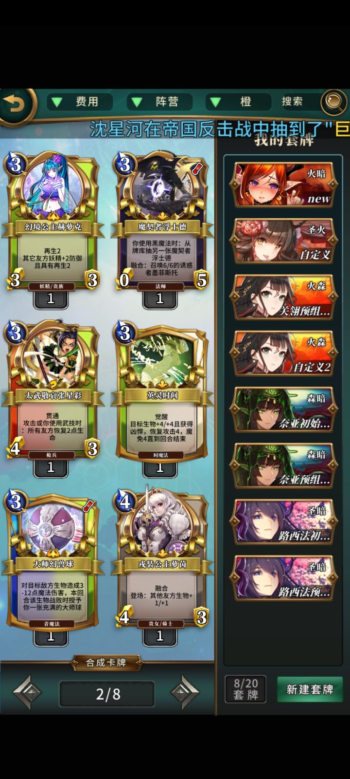 输了一把是因为贪了,想打一手电疗解全场,本来应该可以9-0的说一下这套选卡,法术卡18张,生物卡32张一套以法术为核心的卡组(附带铺场打法,控制养大哥打法)其中4张卡可生成法术牌,11张过牌下面说一下选卡思路,以及核心卡牌:如图所示,英雄选择带胜利女神像的雅典娜,以英雄卡为核心的打法构建卡组接下来选卡就是各种法术卡以及过牌,以及配合法术卡产生的效果卡,选完后的卡组及曲线如图:核心单卡:泡沫