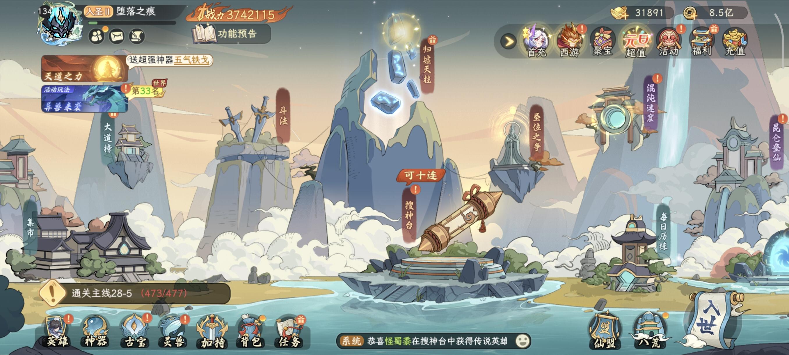 提交一个bug.图一的归墟天柱是有奖励没有领的,点进去什么都没有,这玩意两天了看着好难受