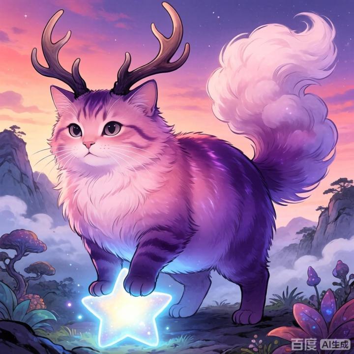 这是融合了龙、凤、猫三种神兽特征的全新奇幻物种,名为炎麟猫凰。 外形特征:以矫健的猫科动物为基底,头部保留了猫咪的灵动轮廓与竖耳,面部覆有龙纹金鳞,眼瞳如熔金般锐利;背部生有凤凰的火焰羽翼,羽色从赤红渐变到鎏金,展开时如烈火燎原;躯干与四肢覆盖着龙的金色鳞甲,边缘点缀着凤凰的赤红火羽,四肢末端是锋利的龙爪;尾部则是燃烧着烈焰的龙尾,尾尖火焰跃动,兼具龙的威严与凤的华丽。气质与能力:它既有着