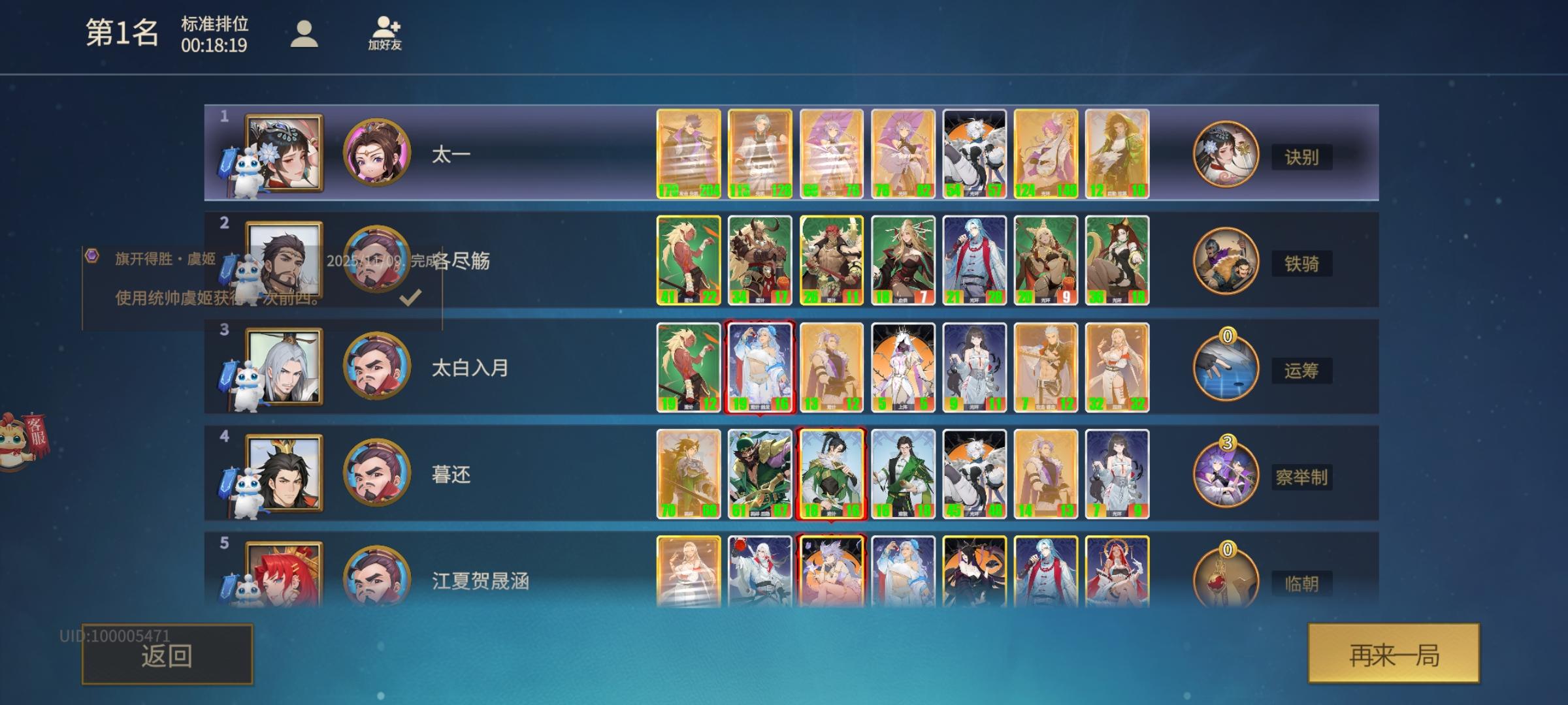 一,跳操唐太难了,除非欧皇附体,否则很难赢。强烈建议调整一下,这类游戏就喜欢玩跳操。二,蜀无脑数值碾压,统帅诸葛亮简直是bug,只要前几回合不贪稍微留多点血量,后期几乎都是第一碾压。妖表面被砍了,实际搭上蜀的顺风车,强得飞起。三,秦不错,白起加强后数值刚好跟上版本。四,汉表现中规中矩。