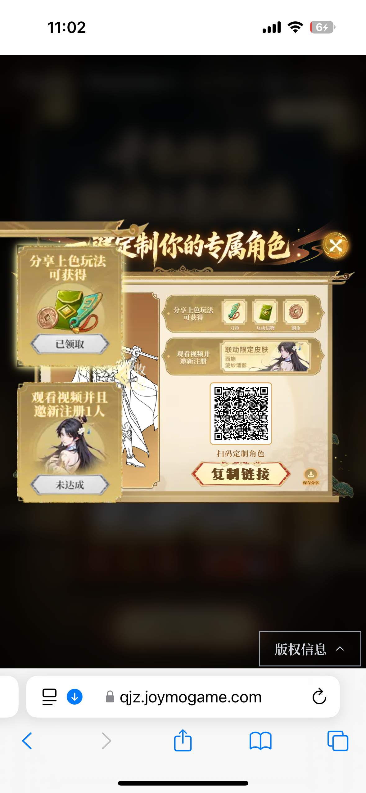 参与皮影上色免费送联动限定皮肤?《千机阵》1.29 公测福利!主公别错过~https://qjz.joymogame.com/pyss/?invite_code=17696556703977906&share_role=1