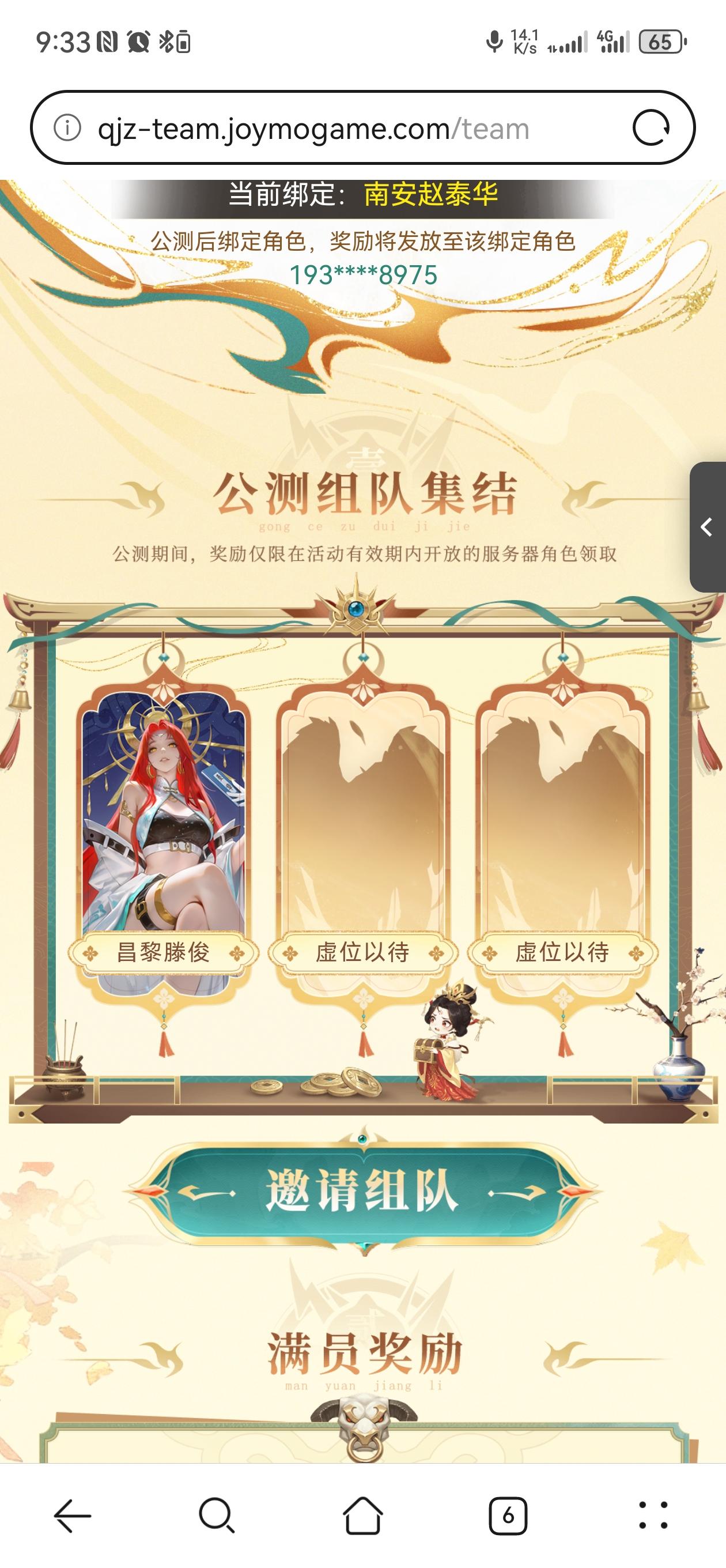《千机阵》公测组队抽典藏皮肤100 抽。 我这儿2缺1,点一下就行,咱俩能不能当欧皇就看这一波了http://qjz-team.joymogame.com/team/?phone=19375138975&team_id=swx0fi&nick_name=%E6%98%8C%E9%BB%8E%E6%BB%95%E4%BF%8A