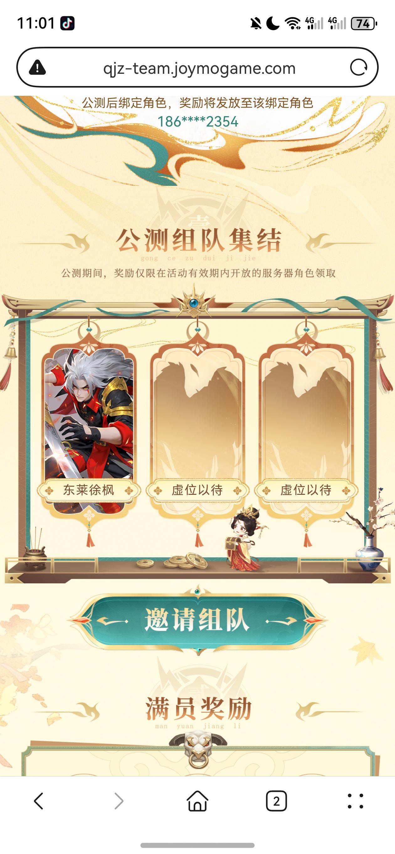 《千机阵》公测组队抽典藏皮肤100 抽。 我这儿2缺1,点一下就行,咱俩能不能当欧皇就看这一波了http://qjz-team.joymogame.com/team/?phone=18676262354&team_id=08y701&nick_name=%E4%B8%9C%E8%8E%B1%E5%BE%90%E6%9E%AB