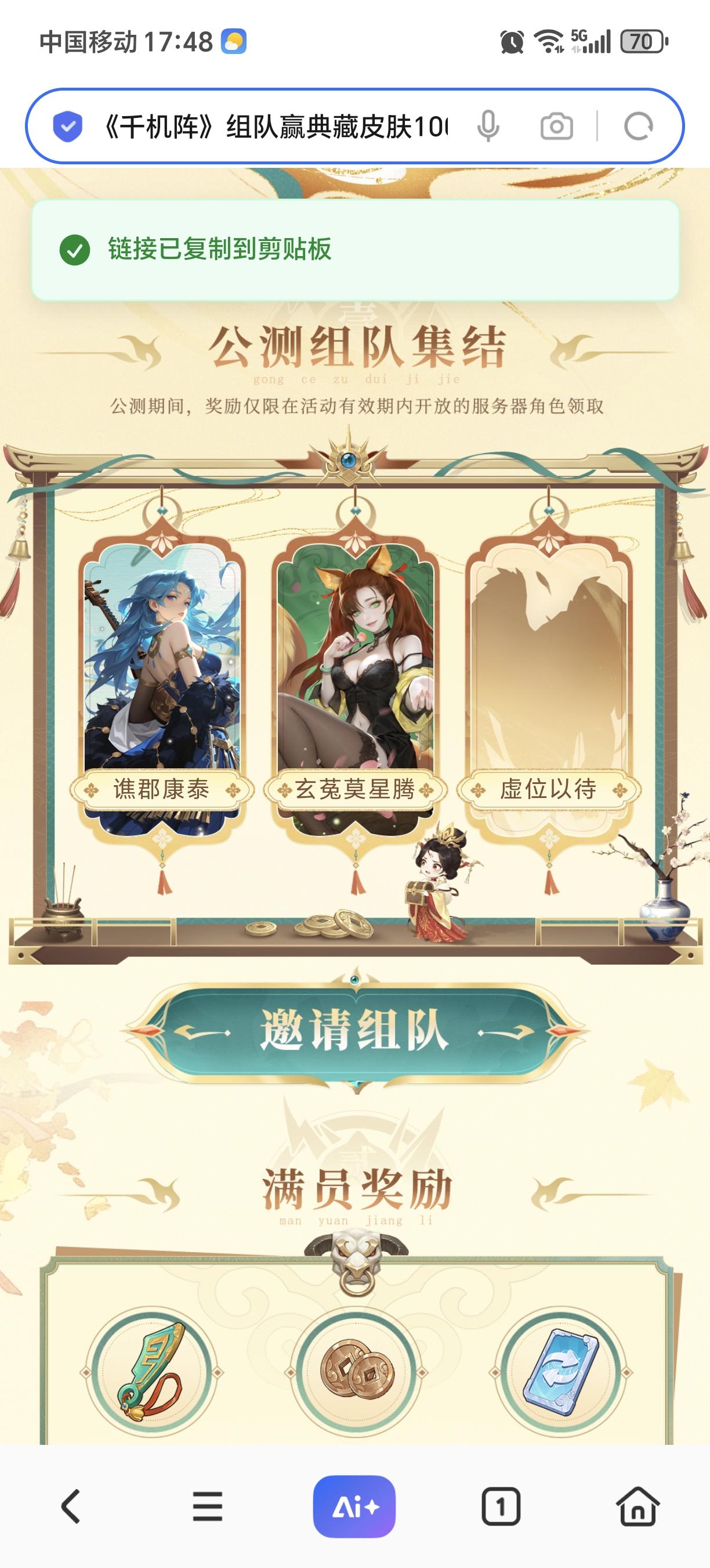 《千机阵》1月29日公测!我已在集结组队活动中,三人成行就有机会赢100抽典藏皮,阵容都研究好了,就差你了!速来→http://qjz-team.joymogame.com/team/?phone=18777359023&team_id=dnh0bl&nick_name=%E8%B0%AF%E9%83%A1%E5%BA%B7%E6%B3%B0