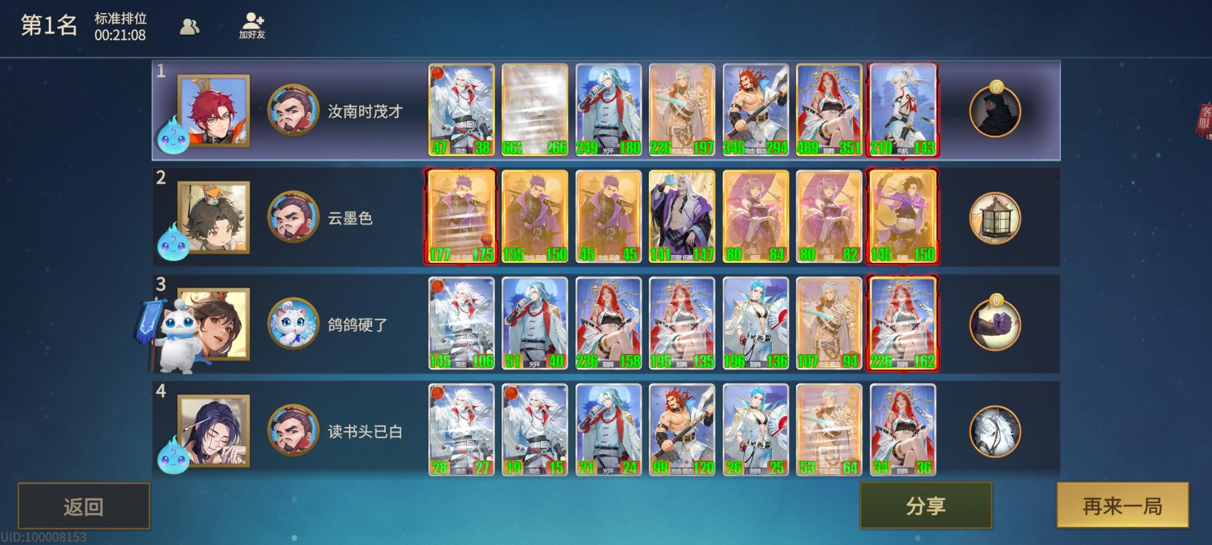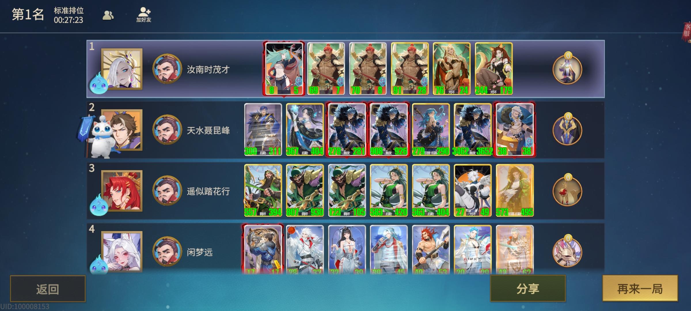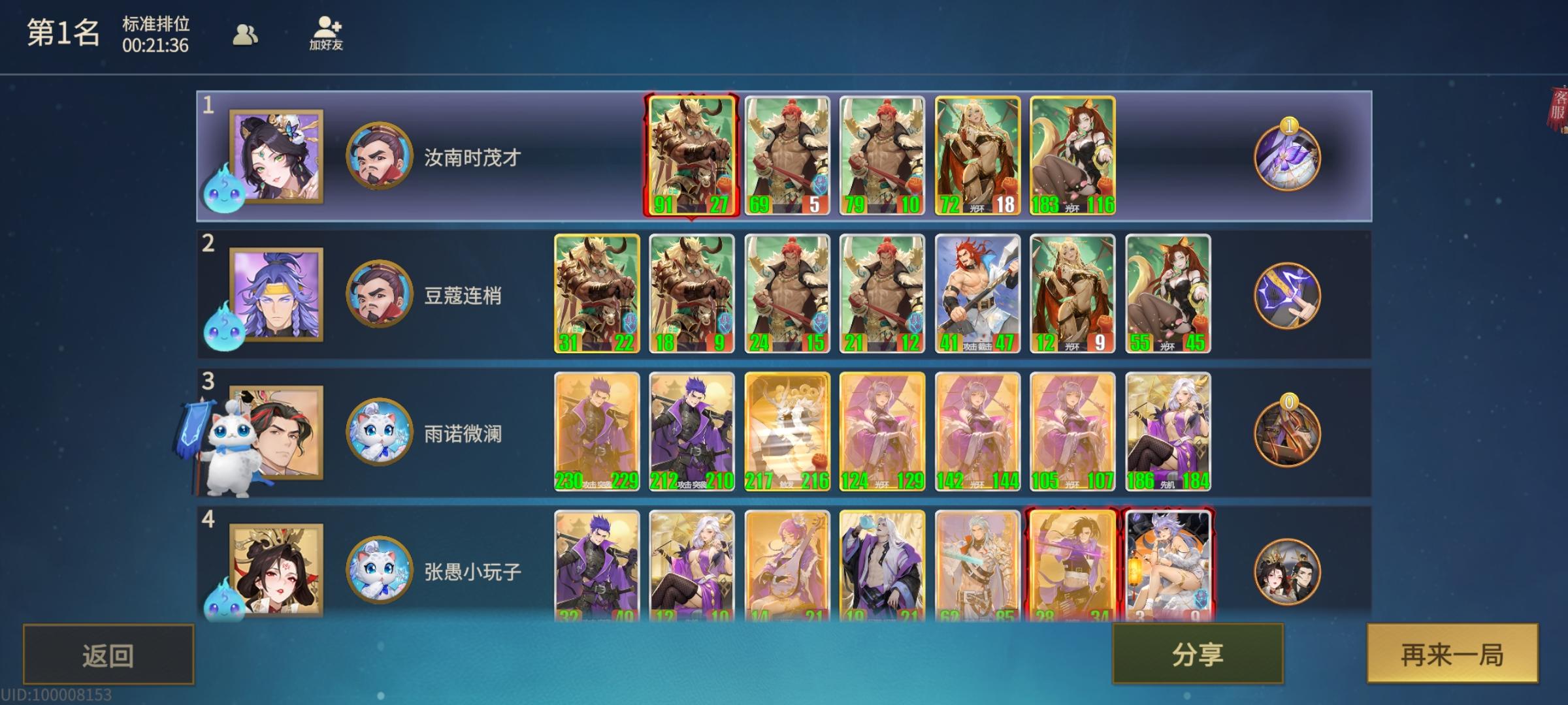 #千机阵攻略 针对汉阵容 先攻击的一定是霍去病,只需要上带守卫的相柳,就一定能够毒杀,对方有多个霍去病,我方就需要多个守卫相柳。[表情_大笑] 唯一个大守卫一定是李广,李广被攻击会套屏障不好杀,所以一号位需要一个普通相柳即可毒杀。[表情_大笑] 其他汉都是屏障白板,二号位白板浴火遗计全场aoe2点伤害,屏障全破。尤其注意,浴火不要上守卫,容易被霍去病白嫖,然后对方吕后再上屏障,针对失败[表情_吐舌头]