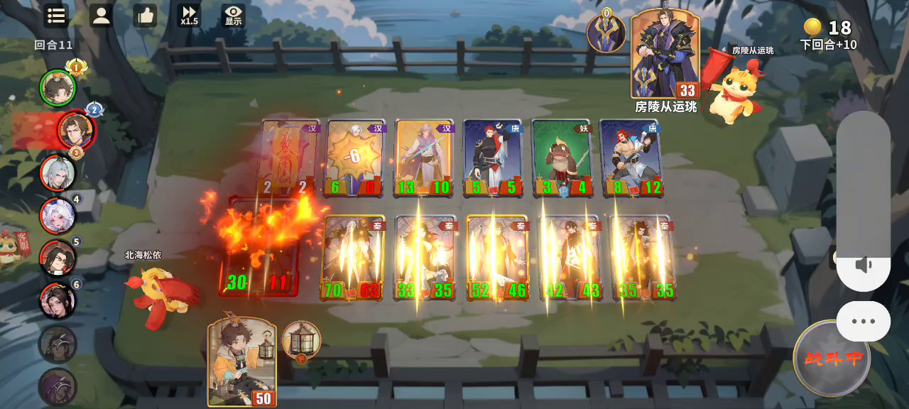 孟姜女还是强,稳定吃俩怪,以前一直不爱用。连着三回合平局,眼瞅着我的数值成长不过他,拖到了20回合,第一次见疲劳结束游戏的。最后一局我相柳吃了他的蒙恬,不然有可能会输了,残局李白打不过蒙恬。复盘感觉还是把秦琼放二号位更好,让他吃相柳比较划算。